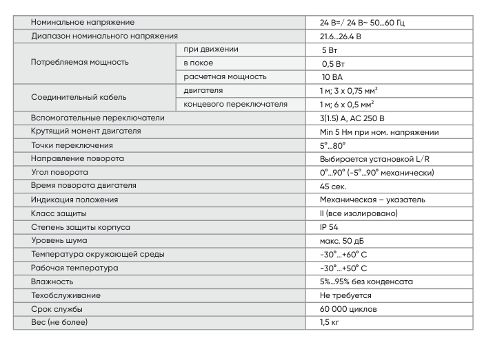 При подаче питания происходит вращение вала электропривода к положениям открыто или закрыто. При прекращении подачи питания вал сохраняет свое положение