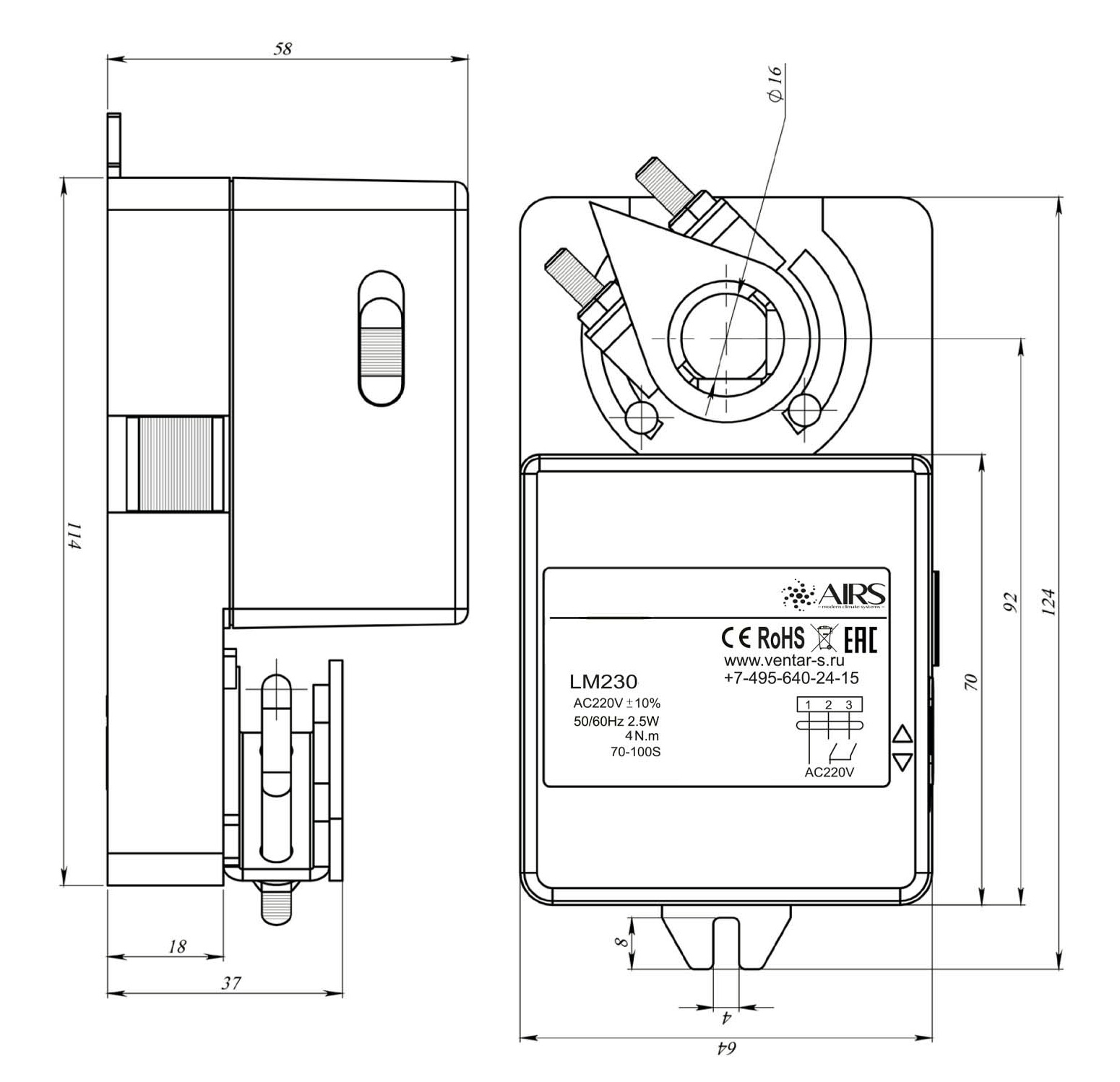 - Управление воздушными клапанами площадью до 0,8 м2
