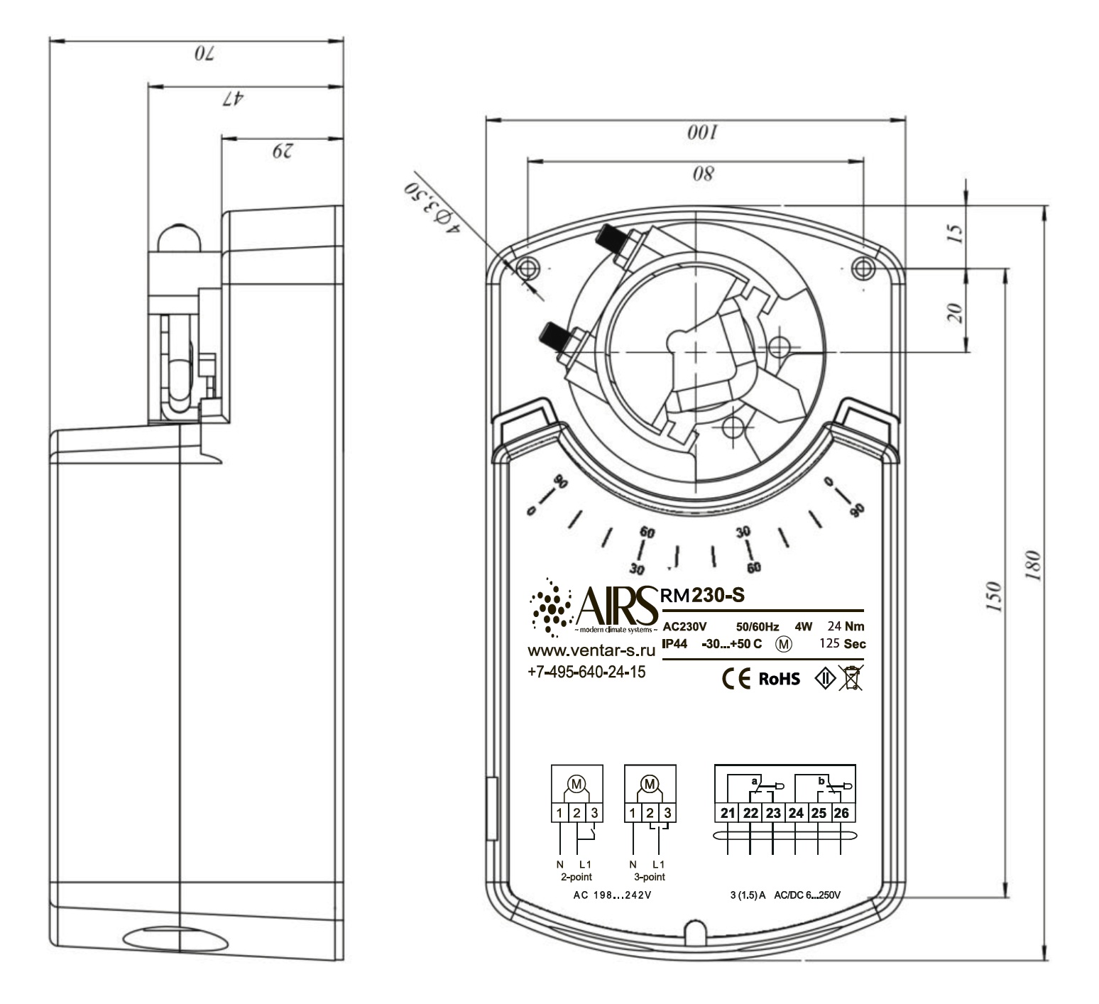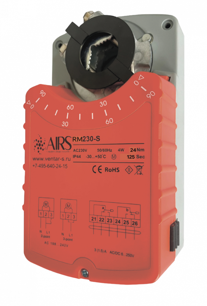 Электропривод легко устанавливается непосредственно на вал створки клапана круглого сечения 10...20 мм или квадратного сечения 10...16 мм и закрепляется с помощью универсального крепежного устройства. К корпусу клапана электропривод крепится при помощи универсальной крепежной пластины или непосредственно на корпус клапана.