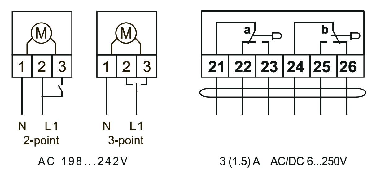 Электропривод содержит два встроенных переключателя, которые могут устанавливаться на различный угол сигнализации. Промежуточное положение определяется по механическому указателю.