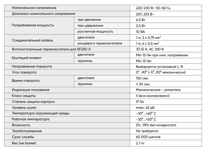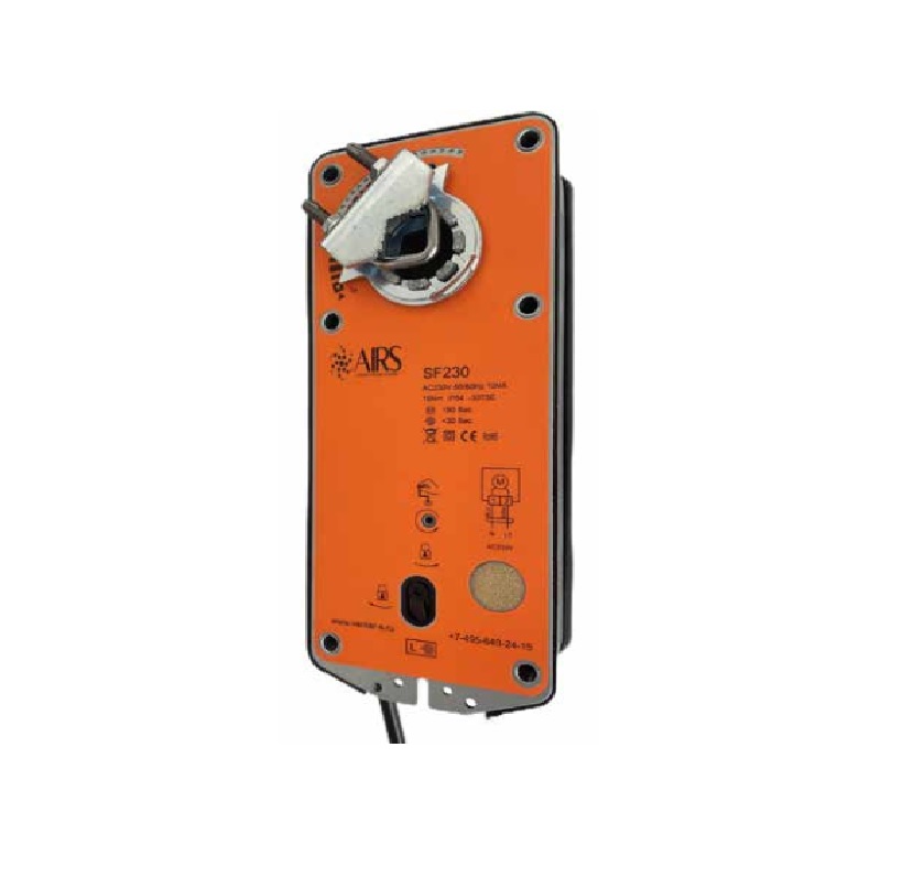 При подаче напряжения питания вал привода приводит створку клапана в рабочее положение и одно- временно взводится возвратная пружина. При прекращении подачи питания энергия, запасенная в пружине, возвращает створку клапана в охранное положение.