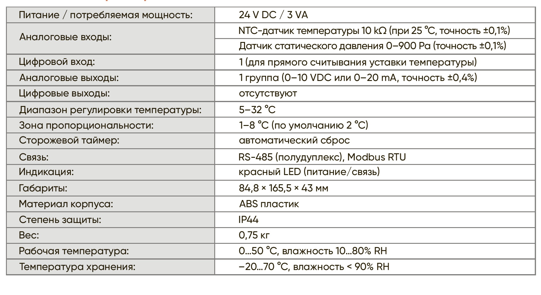 Работает с датчиками давления, температуры (NTC) и сигналами 0-10 VDC, поддерживает точное ПИД-регулирование (P+|+D) и функцию “мертвой зоны”, обеспечивая стабильное и надежное управление.