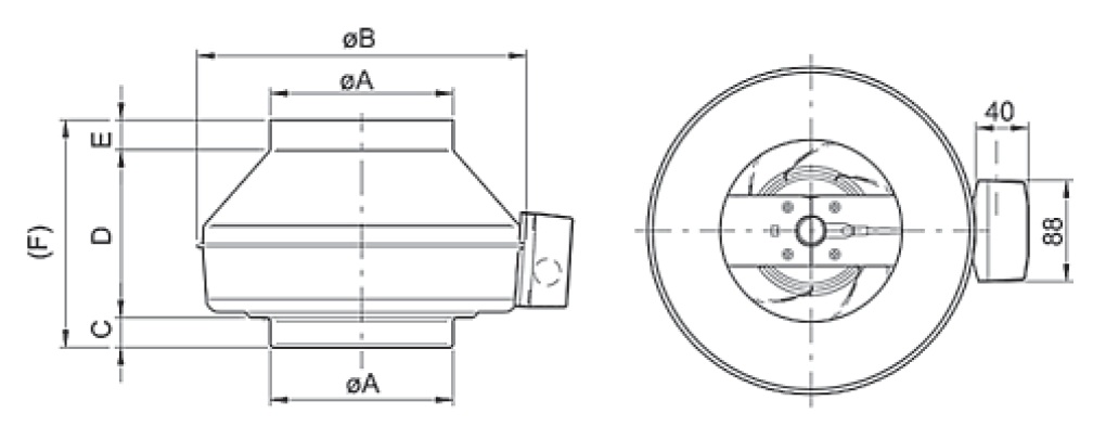 Изготавливается на базе однофазного двигателя с внешним ротором. Крыльчатка и двигатель представляют собой единый блок, что позволяет применять воздуховоды малого диаметра и обеспечить стабильные рабочие характеристики, высокую эффективность и длительный срок службы изделия