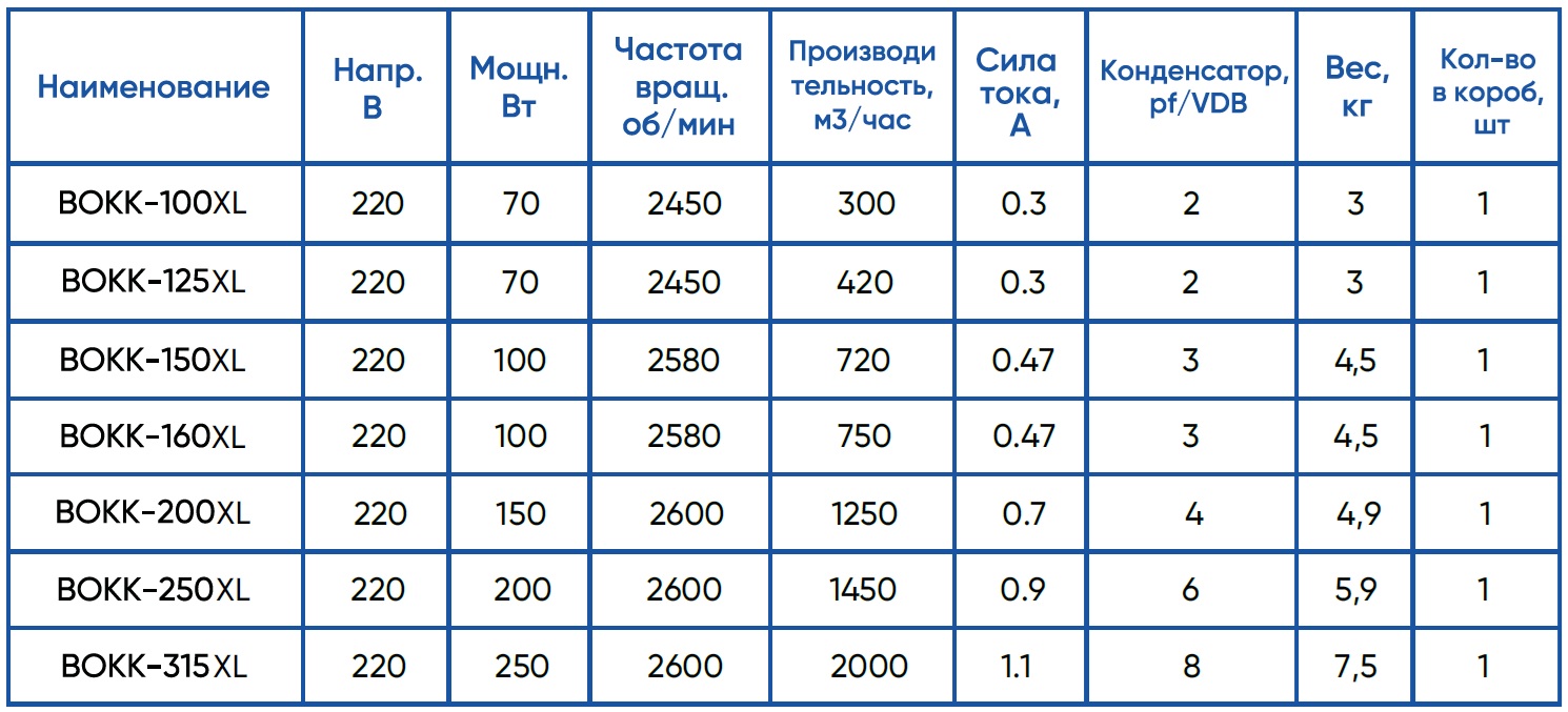 Канальный вентилятор повышенной производительности ВОКК-100XL
