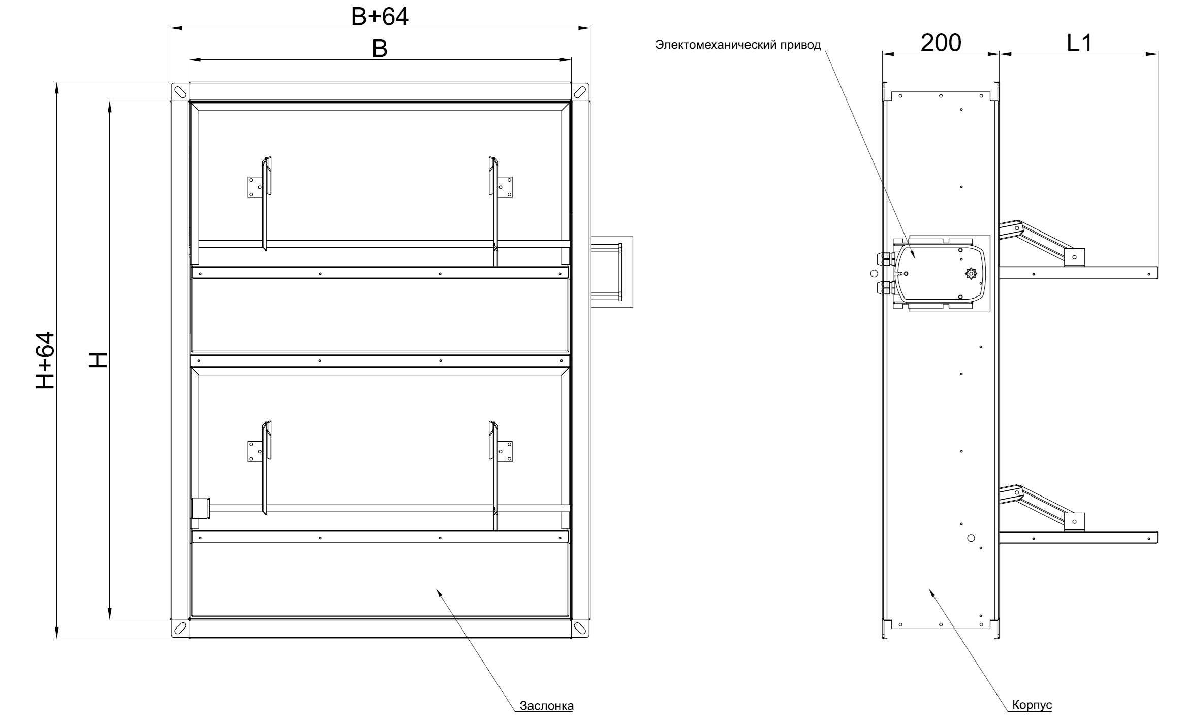Корпус прямоугольного клапана, в зависимости от исполнения, имеет глубину от 200 мм до 250 мм и конструктивно аналогичен отрезку воздуховода такой же длины. Корпус стенового клапана, в зависимости от исполнения, имеет глубину от 160 мм до 250 мм. Фланец на канальных клапанах шириной 30 мм, на стеновых клапанах 45 мм. Заслонки выполнены из оцинкованной или нержавеющей стали.