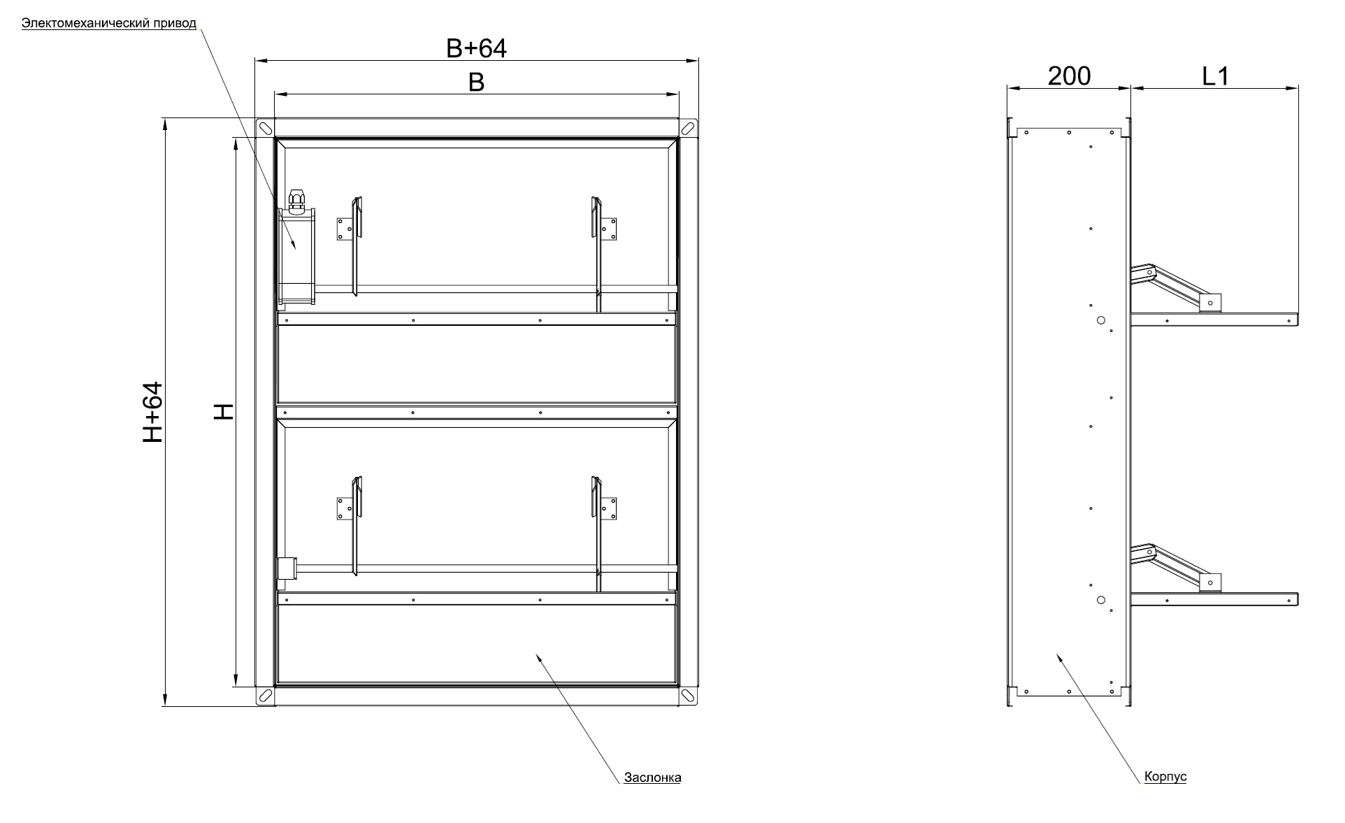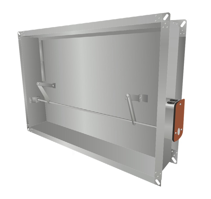 Корпус прямоугольного клапана, в зависимости от исполнения, имеет глубину от 200 мм до 250 мм и конструктивно аналогичен отрезку воздуховода такой же длины. Корпус стенового клапана, в зависимости от исполнения, имеет глубину от 160 мм до 250 мм. Фланец на канальных клапанах шириной 30 мм, на стеновых клапанах 45 мм. Заслонки выполнены из оцинкованной или нержавеющей стали.