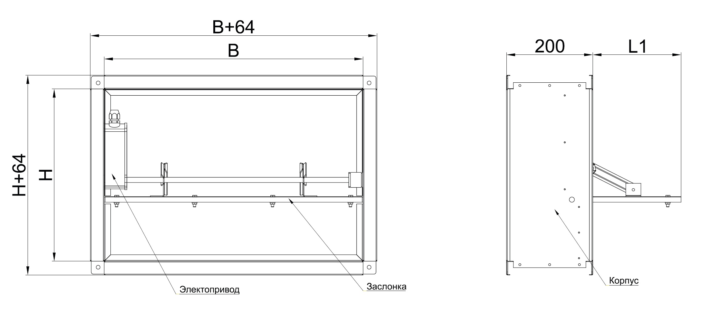 - огнеупорных одной или нескольких заслонок из негорючих минеральных материалов и привода, расположенного снаружи или внутри корпуса.