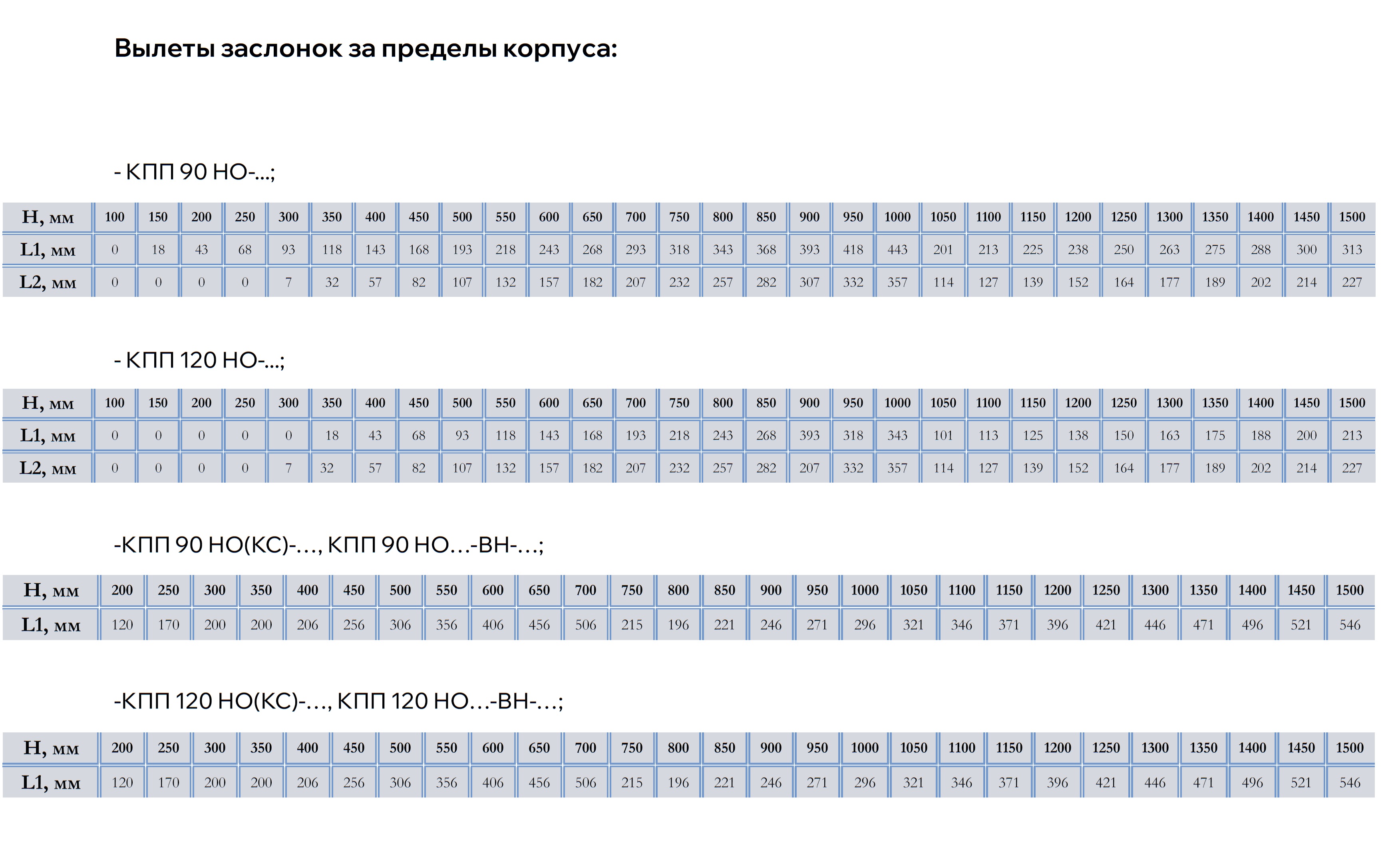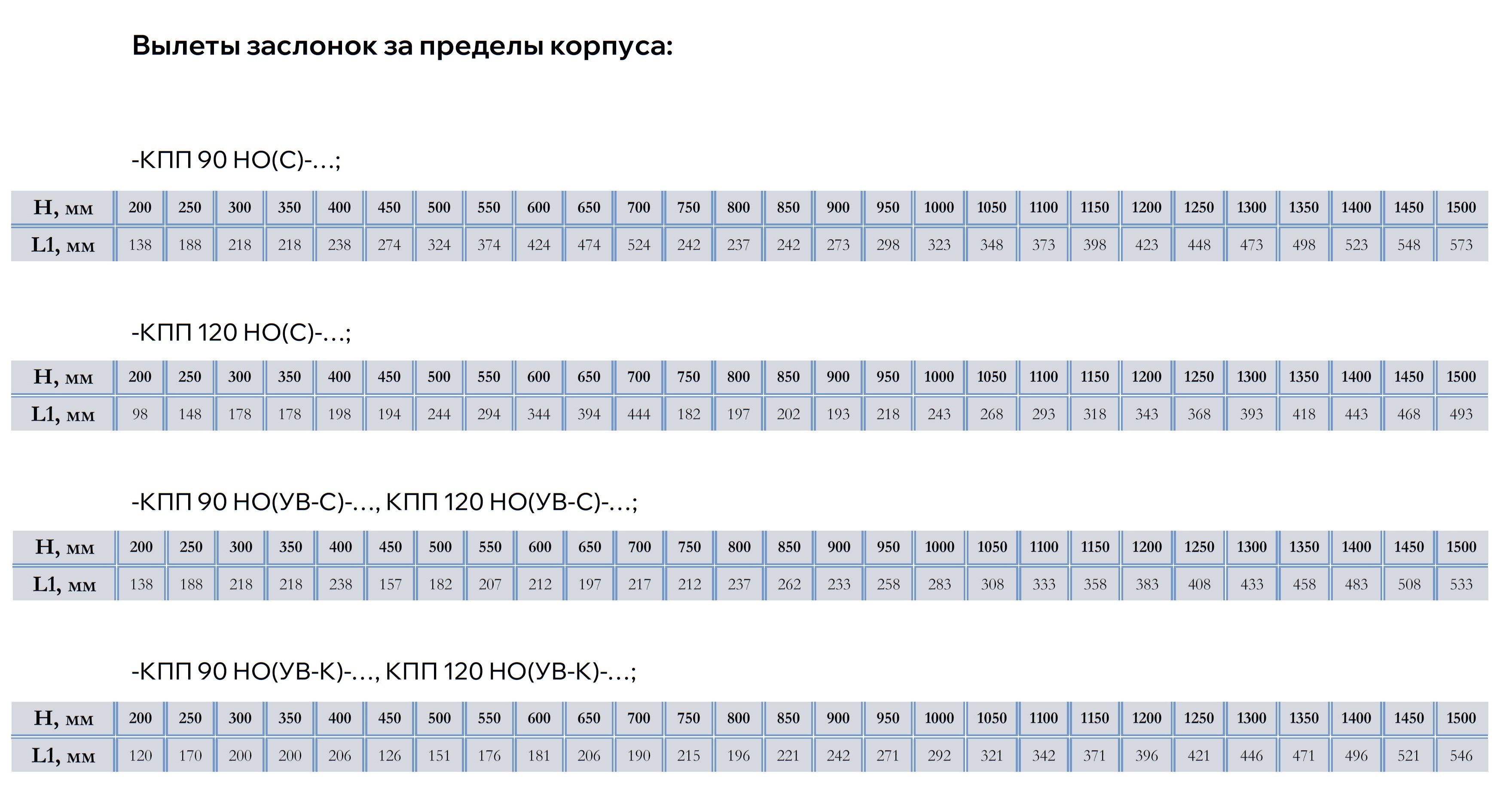 - УВ-С - стеновой с уменьшенным вылетом заслонки