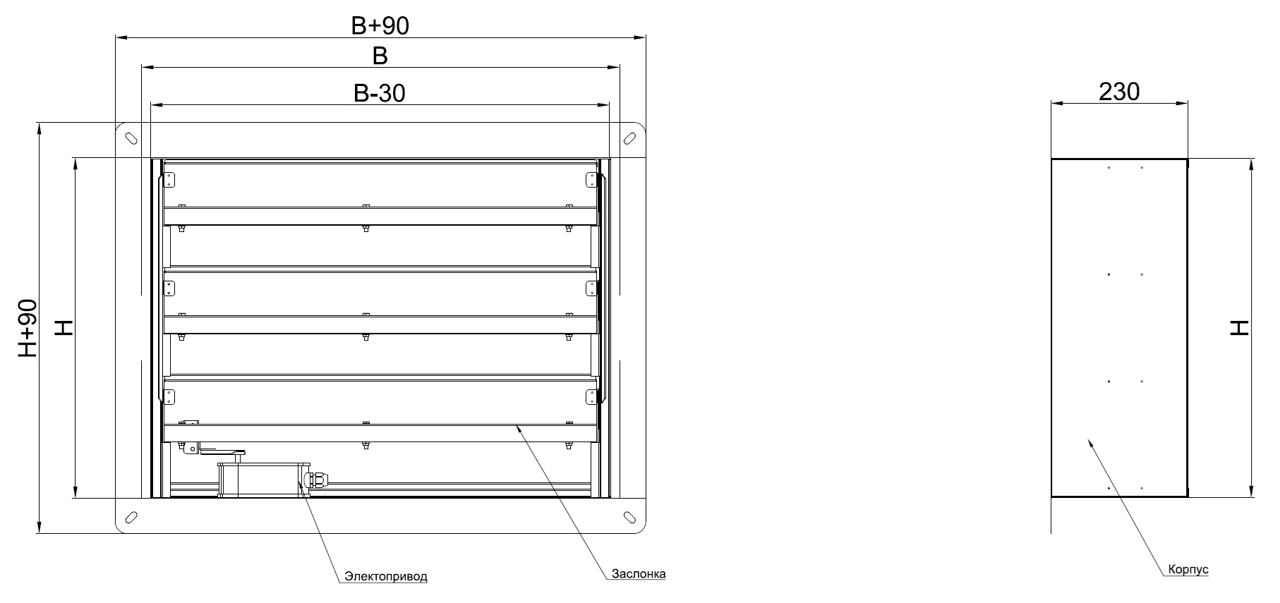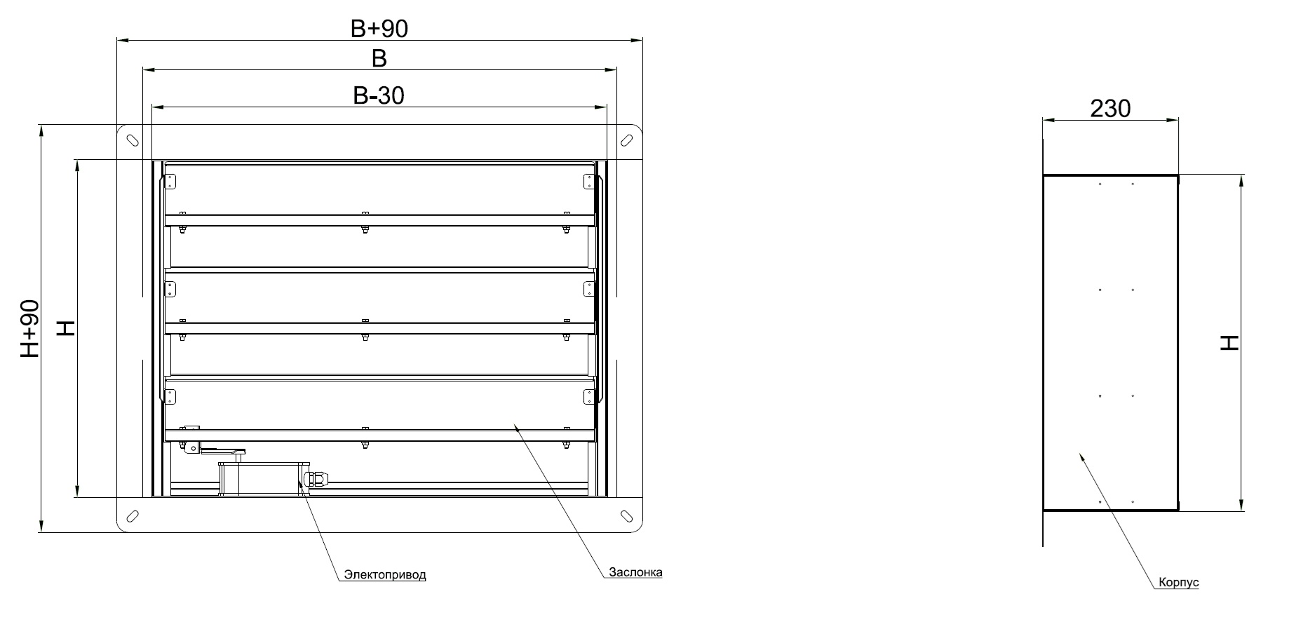 - огнеупорных одной или нескольких заслонок из негорючих минеральных материалов и привода, расположенного снаружи или внутри корпуса.