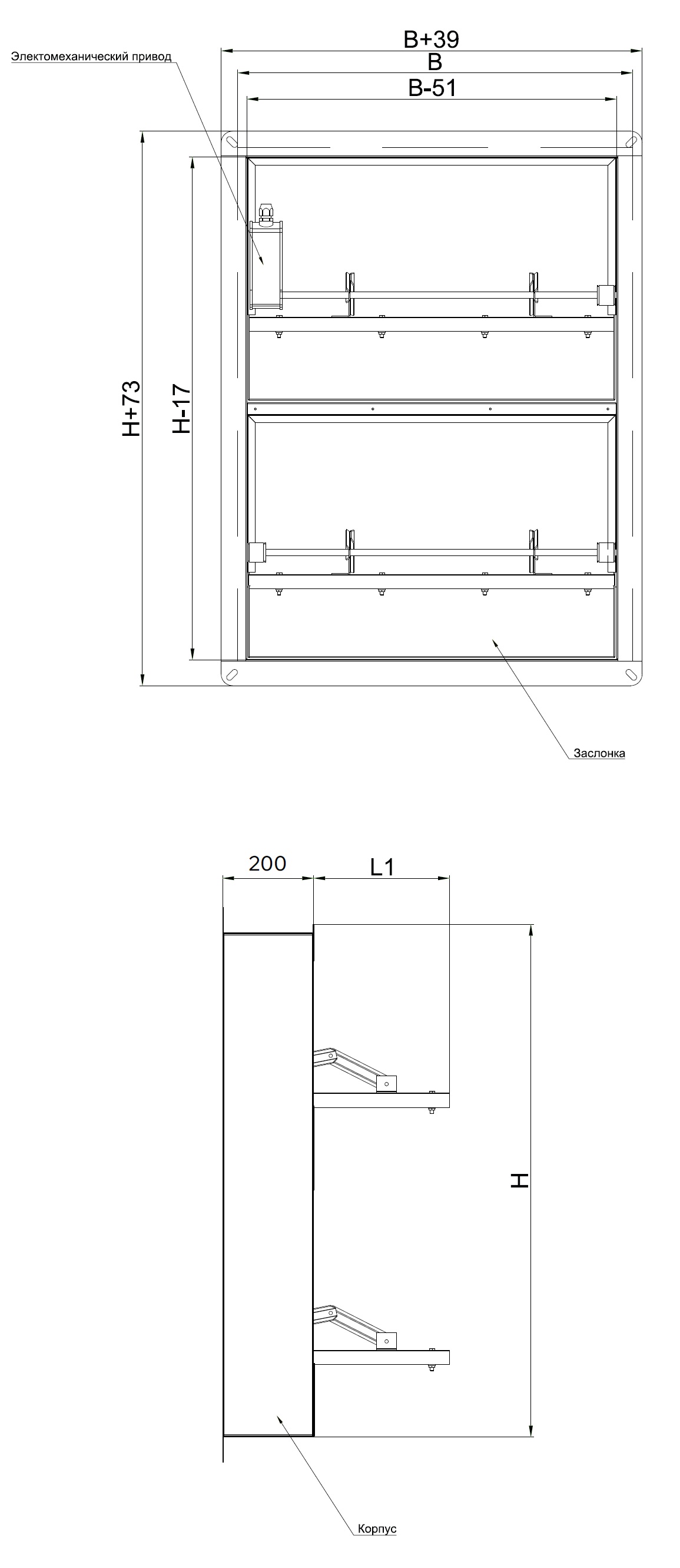 - огнеупорных одной или нескольких заслонок из негорючих минеральных материалов и привода, расположенного снаружи или внутри корпуса.