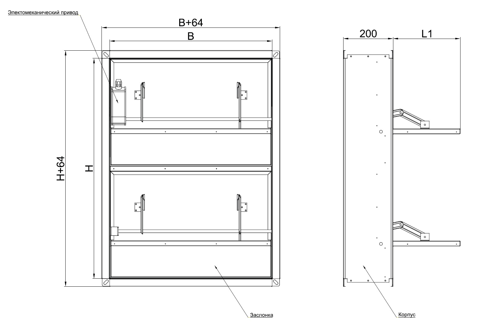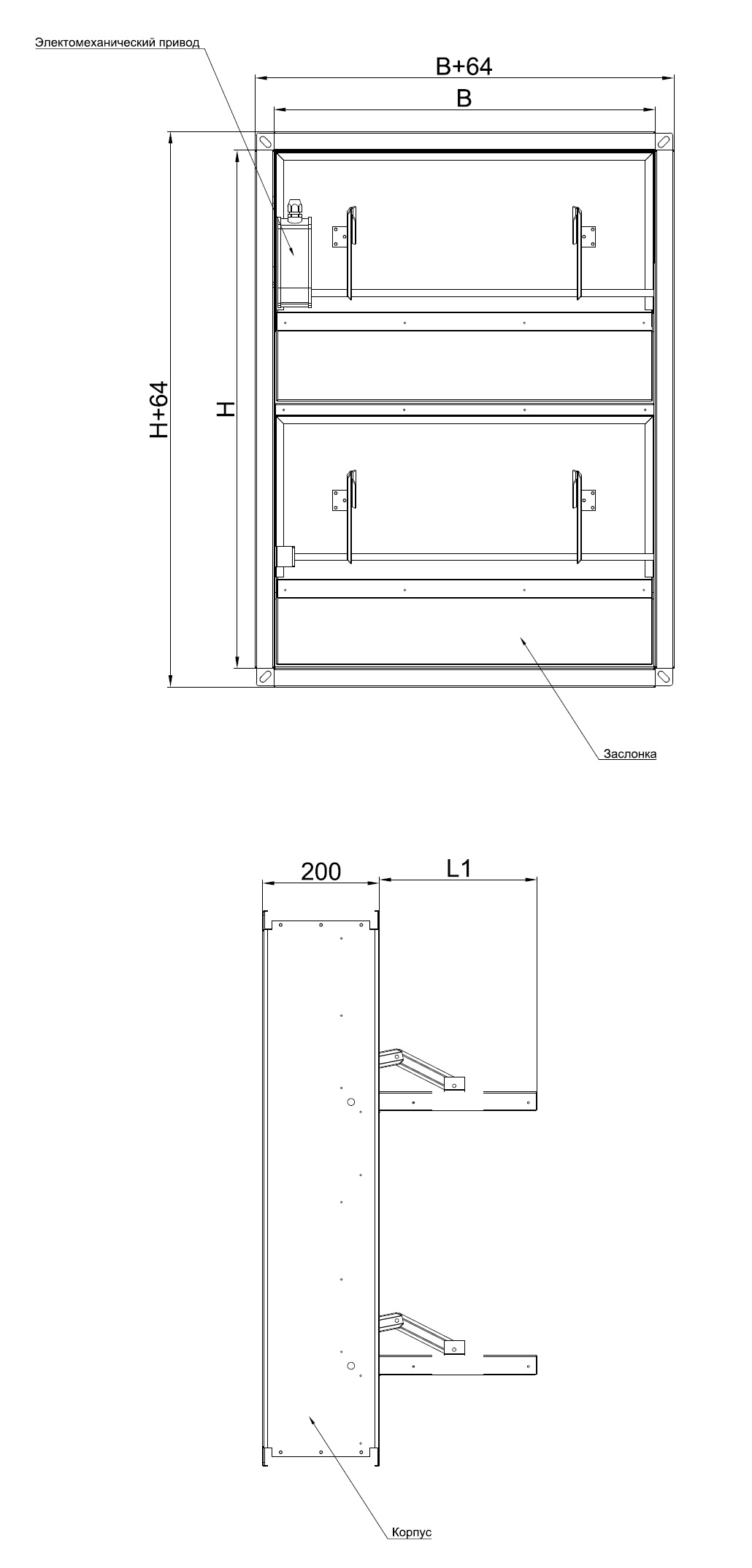 огнеупорных одной или нескольких заслонок из негорючих минеральных материалов и привода, расположенного снаружи или внутри корпуса.