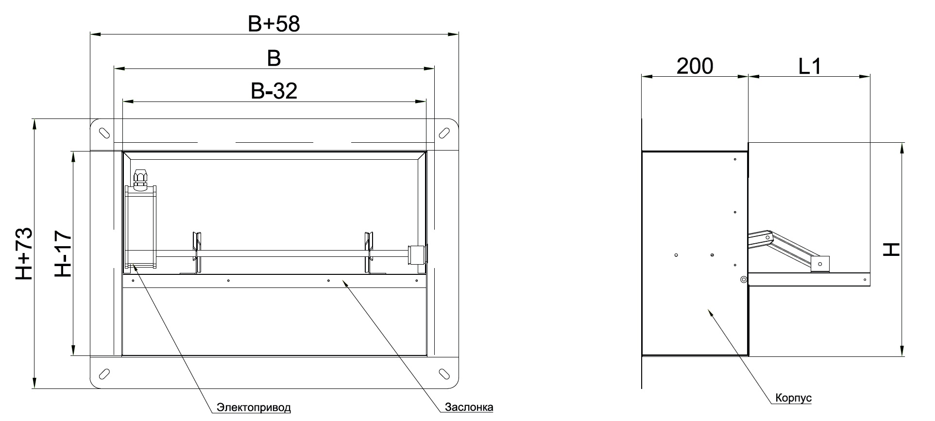 огнеупорных одной или нескольких заслонок из негорючих минеральных материалов и привода, расположенного снаружи или внутри корпуса.