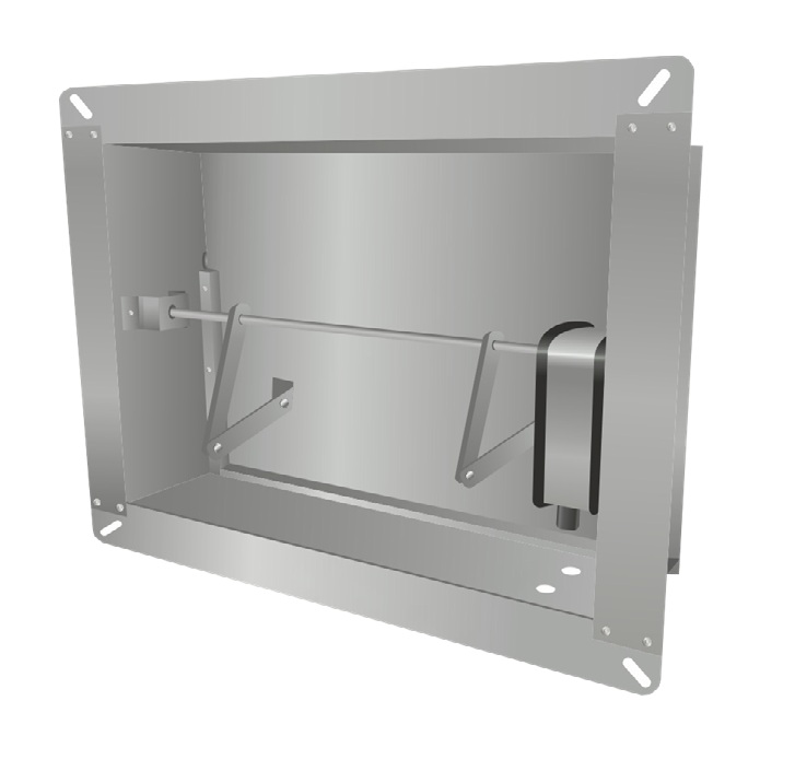 одностворчатые стенового исполнения с одним фланцев для крепления к стене, где отсутствует вылет заслонки за лицевую сторону корпуса клапана