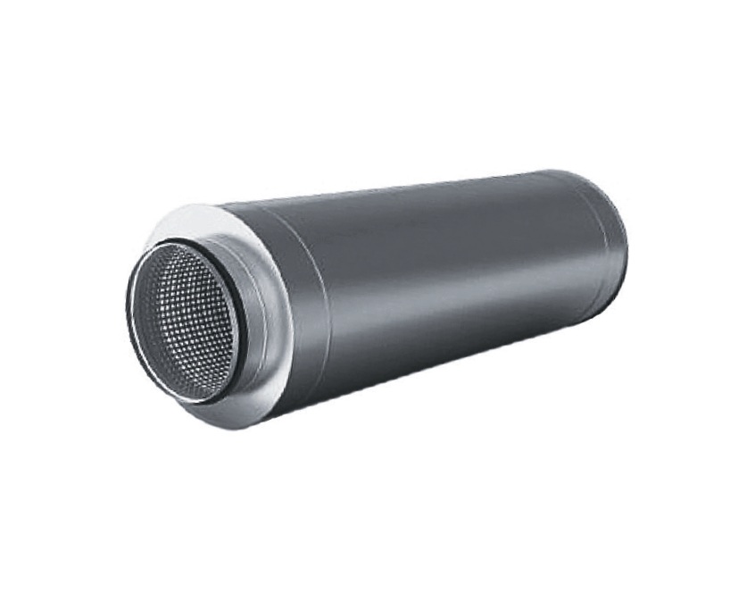 Трубчатый шумоглушитель предназначен для снижения уровня шума от вентиляторов. Максимальная температура перемещаемого воздуха составляет 70°С. Шумоглушитель выполняется в виду двух круглых воздуховодов из стального оцинкованного листа, вставленных один в другой. Пространство между наружным (гладким) и внутренним (из сетки) воздуховодами заполнено звукопоглощающим материалом (базальт кашированный). Монтаж шумоглушителя можно осуществлять в любом положении. Потеря давления на шумоглушителе трубчатого типа та же, что и на эквивалентном участке круглого воздуховода.