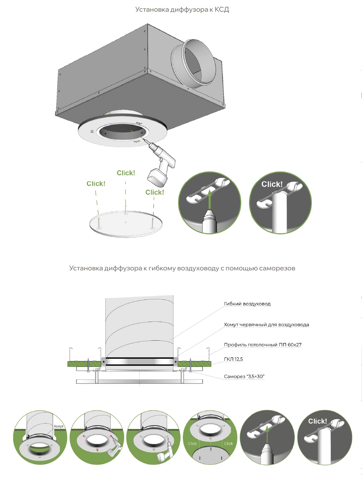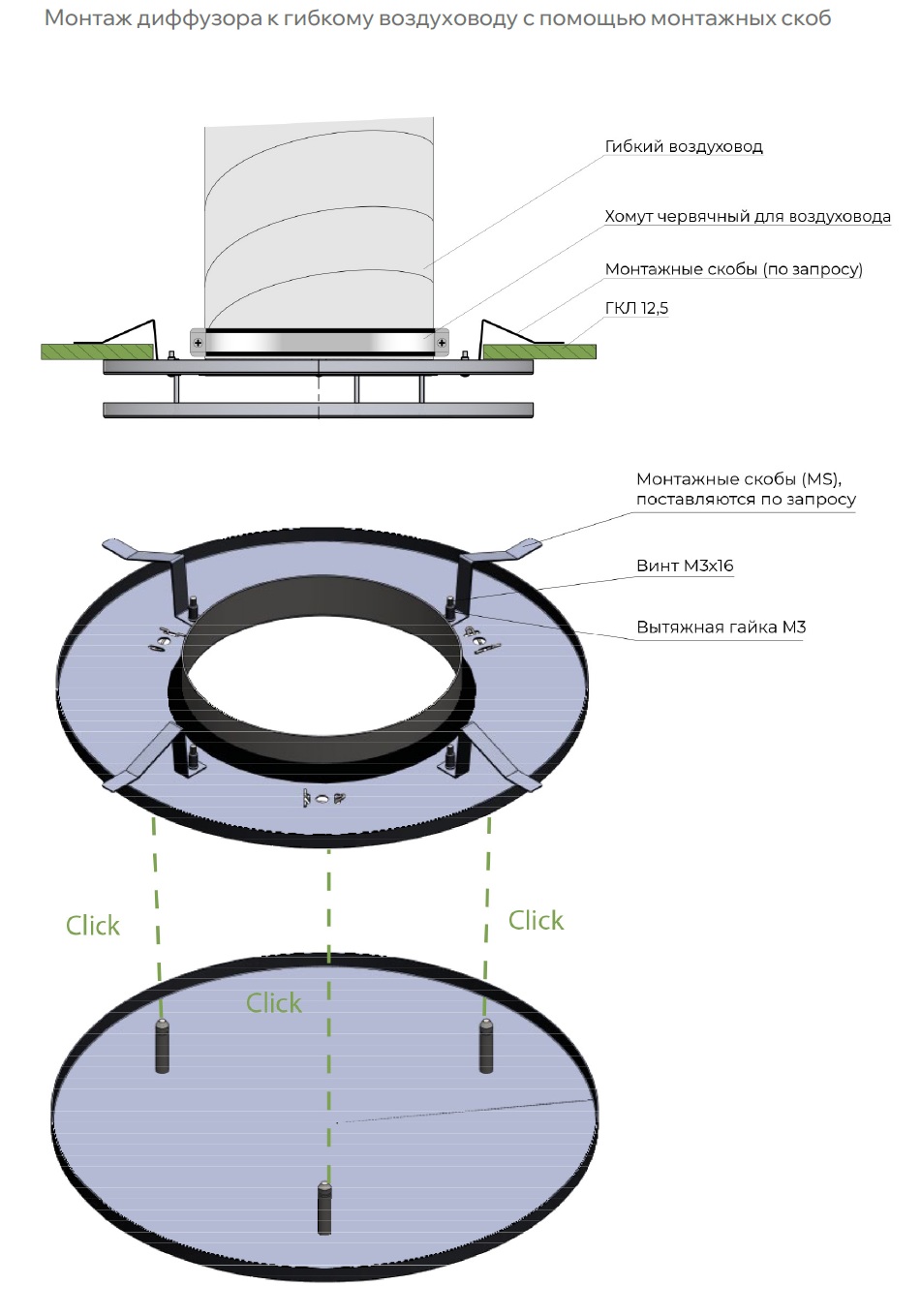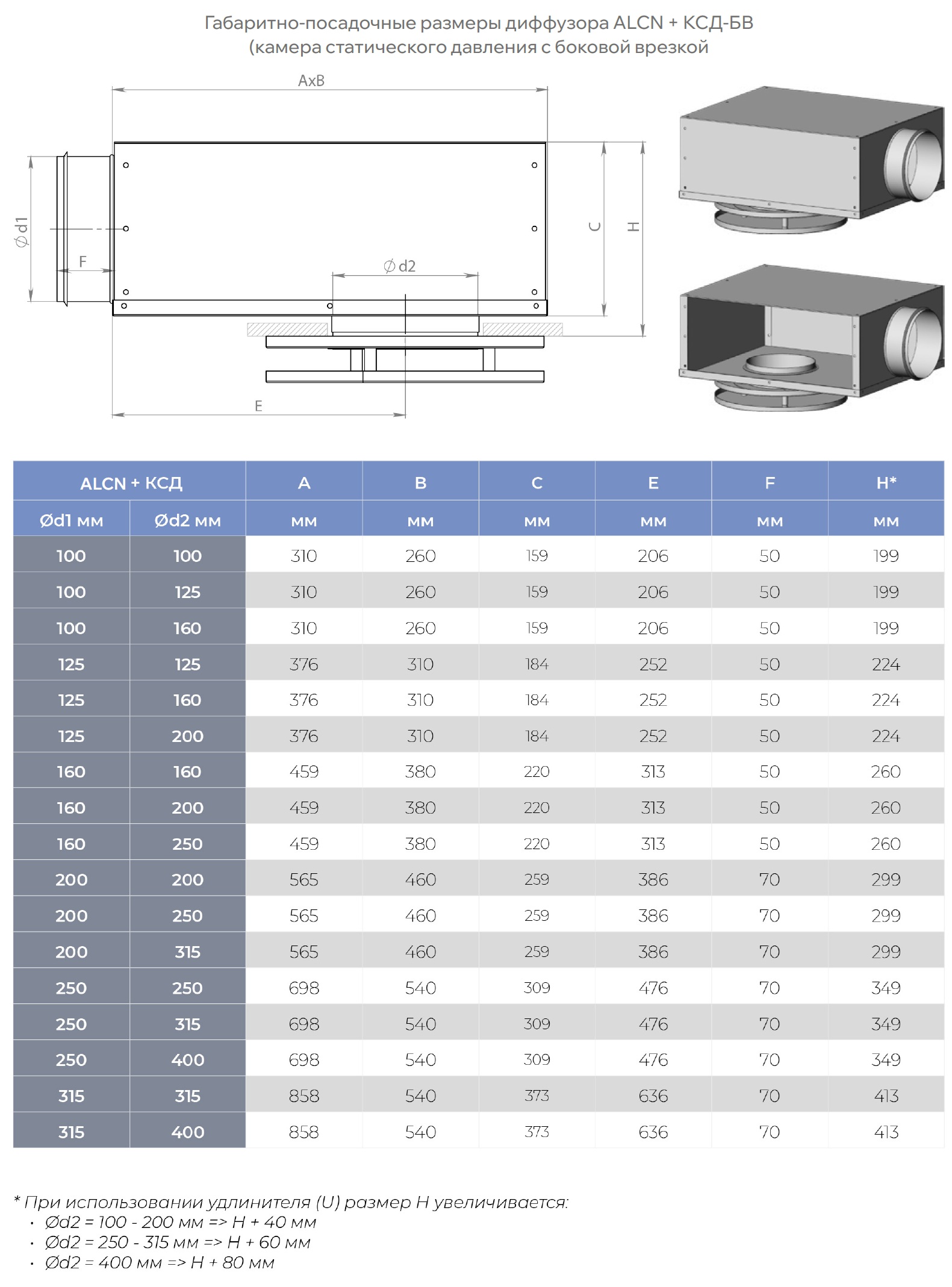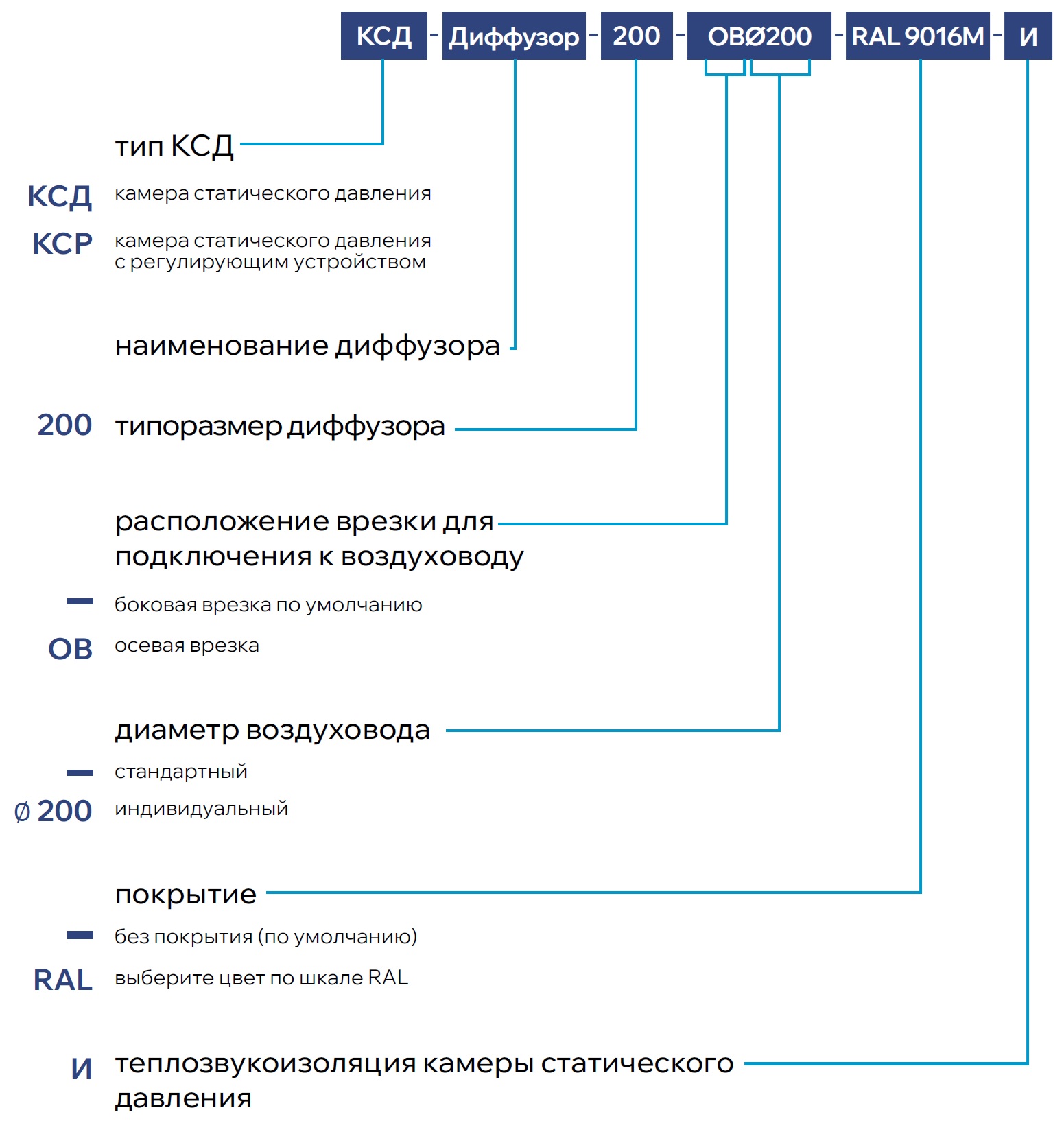 При заказе диффузора с камерой статического давления определяющими размерами являются размеры диффузора, поэтому в примере заказа не указываются. По требованию возможно изготовление КСД по чертежам заказчика.