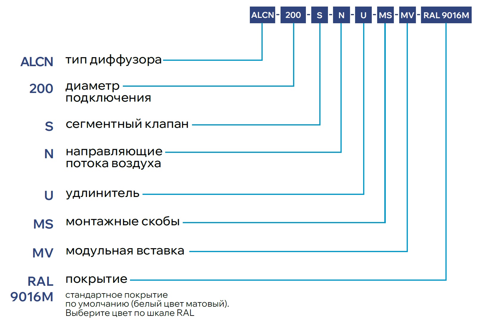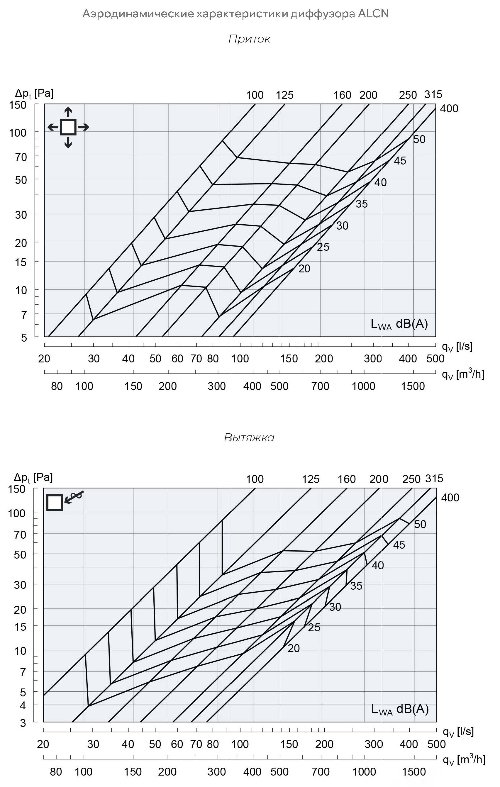 Круглый диффузор ALCN с неперфорированной плоской лицевой частью применяется как для притока, так и для вытяжки. ALCN предназначен для горизонтальной подачи воздуха. При комплектации направляющими, возможно регулировать направление потока воздуха.