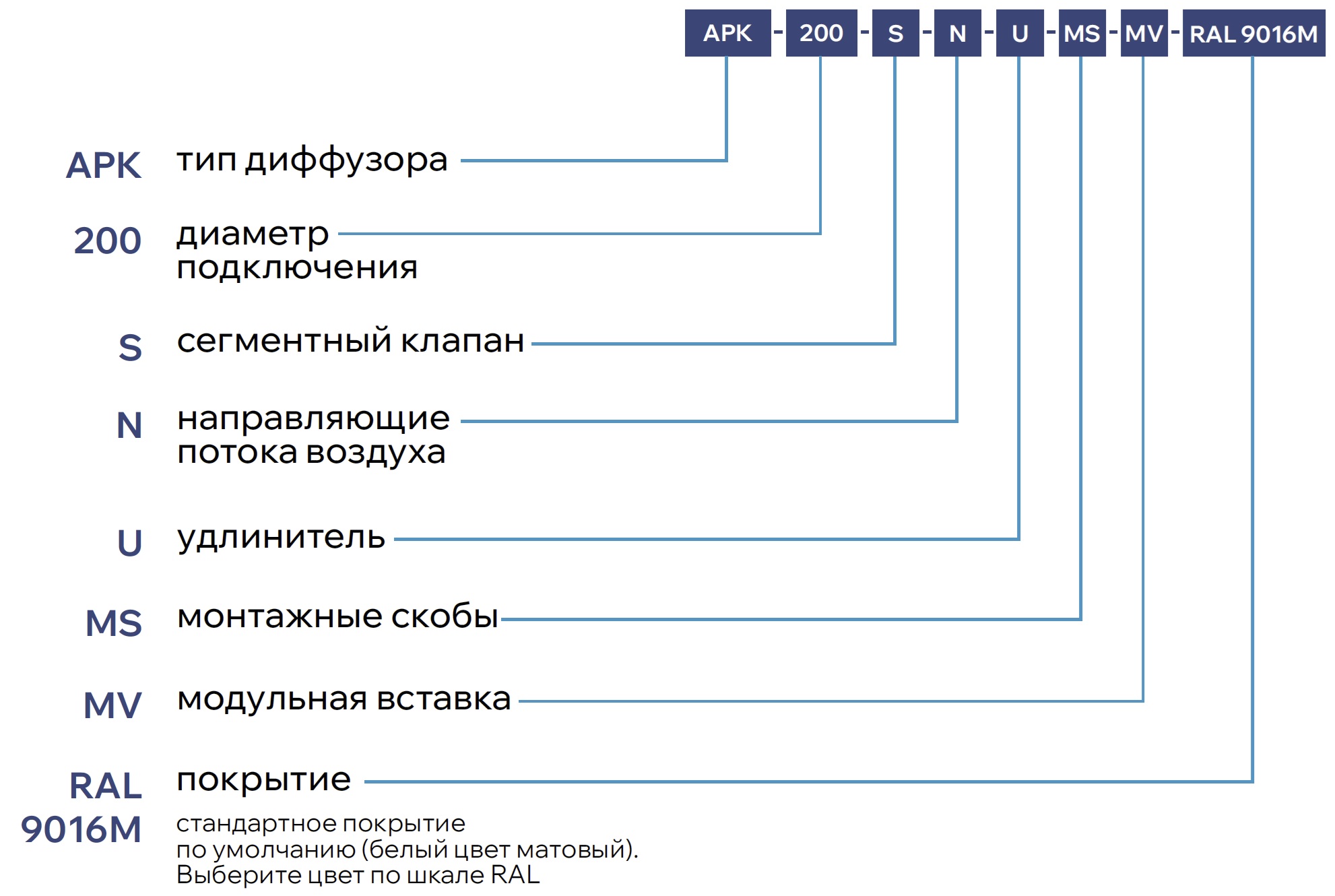При заказе диффузора с камерой статического давления определяющими размерами являются размеры диффузора, поэтому в примере заказа не указываются. По требованию возможно изготовление КСД по чертежам заказчика.