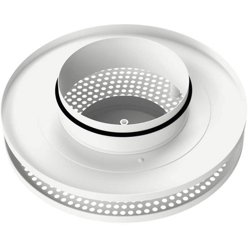Лицевая перфорированная пластина является съемной, что позволяет при необходимости производить очистку и иметь доступ к воздуховоду или камере. По умолчанию диффузор комплектуется съемным рассеивателем потока воздуха черного цвета.