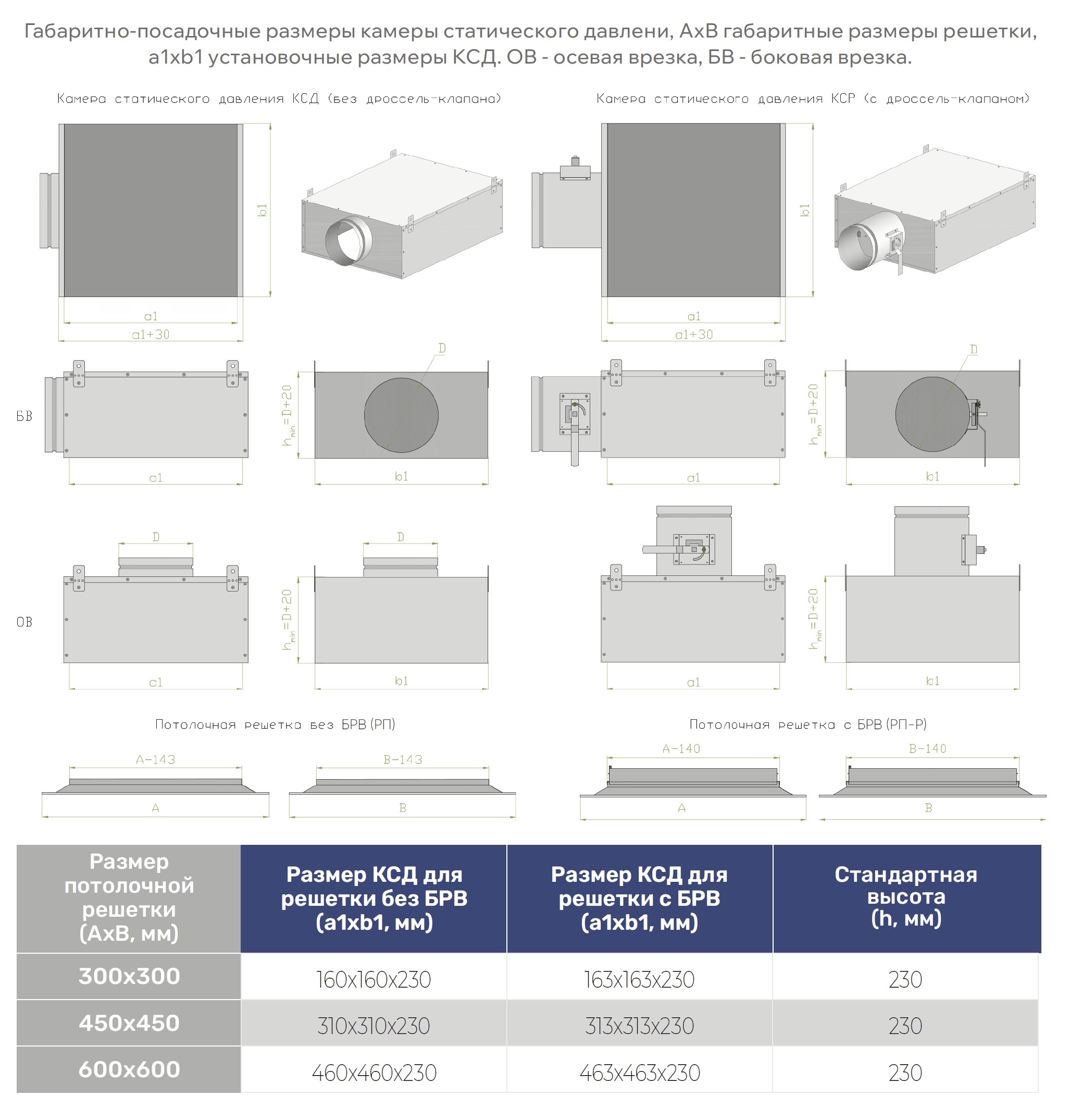 а1хb1 установочные размеры КСД. ОВ – осевая врезка, БВ – боковая врезка