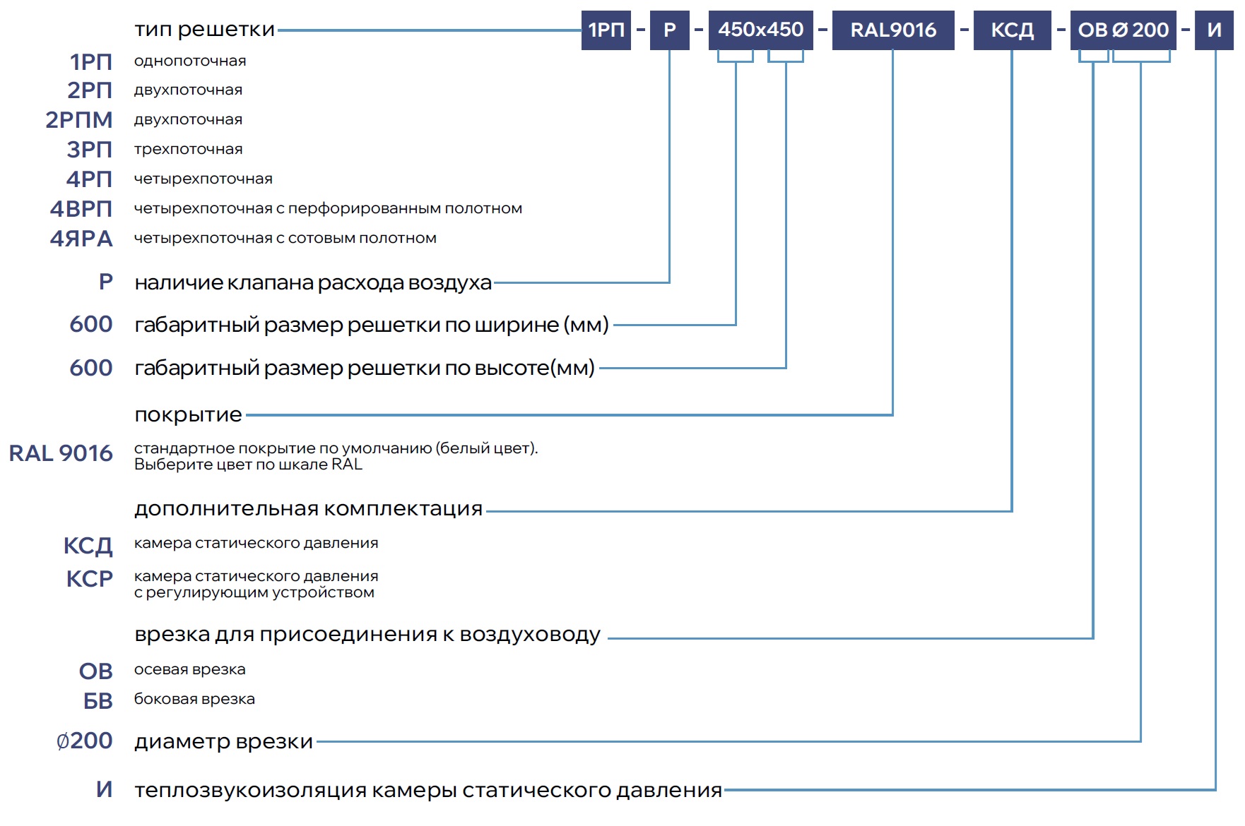 Для подключения к системе воздуховодов потолочные решетки комплектуются камерой статического давления – КСД или КСР.
