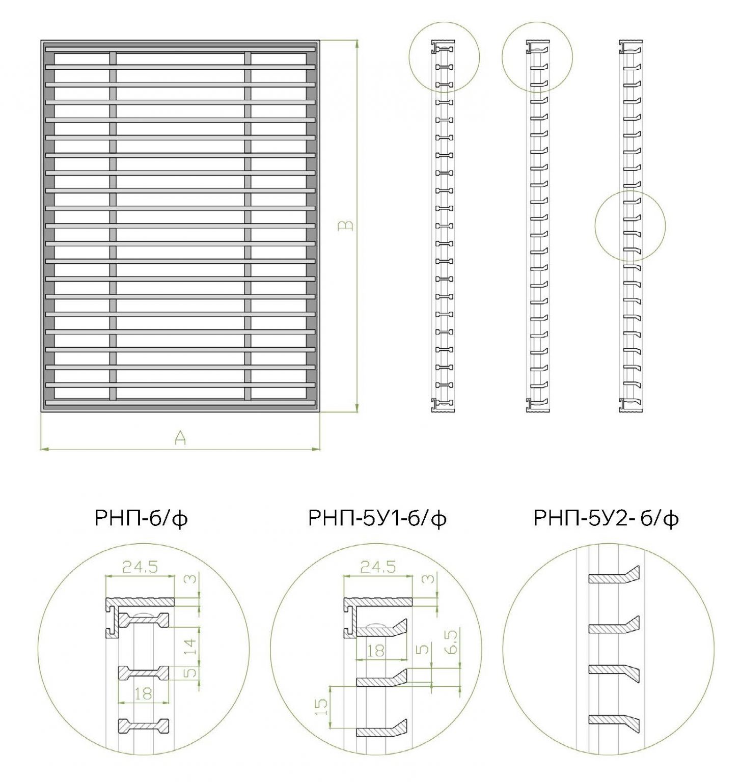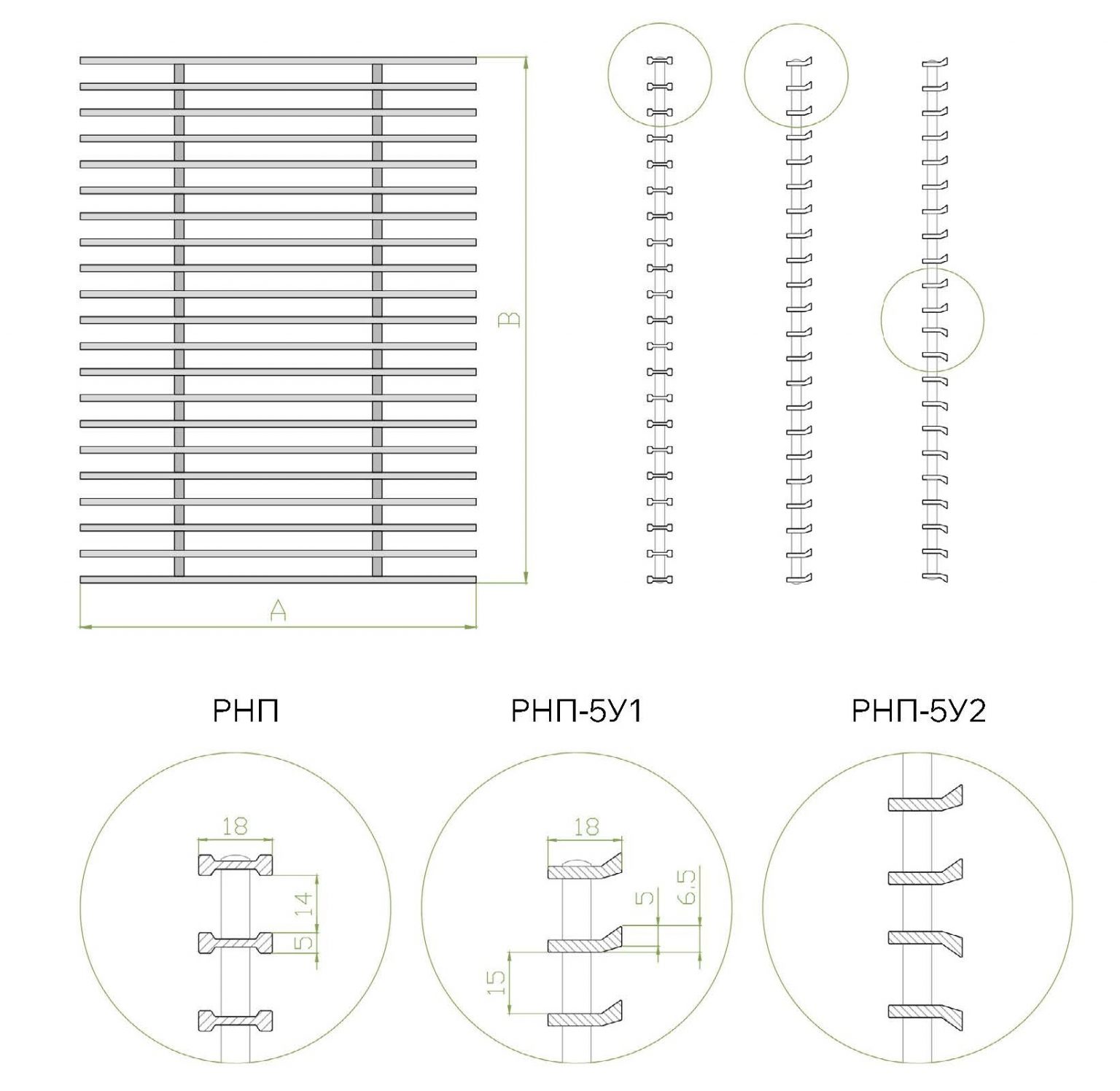 Решетки данного вида включают в себя изделия стандартных типоразмеров, а также возможно изготовление нестандартных размеров с шагом 1 мм.