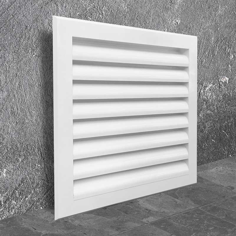 Предназначена для больших проемов. Данная модель отличается от остальных формой жалюзи – они имеют специальную полую S-образную форму с капельником и углом наклона 35˚, что придает решетке жесткость и устойчивость к ветровым нагрузкам при достаточно больших размерах, хорошие аэродинамические свойства и повышенный эстетический вид, а также обеспечивает надёжную защиту от попадания атмосферных осадков.