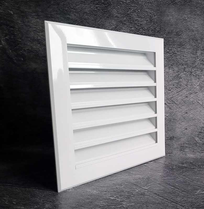Жалюзийные решетки данной модели как и другие изготавливаться могут как прямоугольной, так и круглой или трапециевидной формы, но без возможности ручной или автоматической регулировки ламелей.