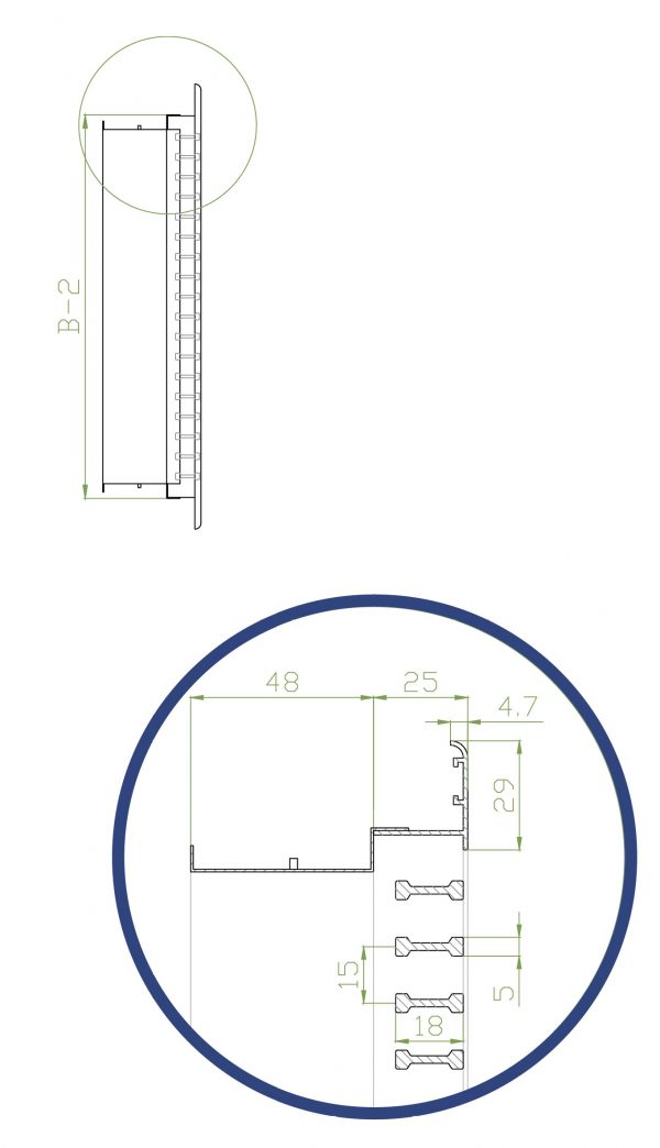 Минимальные рекомендуемые размеры 80х80 мм. Максимальные рекомендуемые размеры 2900х2500 мм. Если ширина решетки превышает 300 мм, устанавливается полоса 12х3 мм во избежание провисания жалюзи.