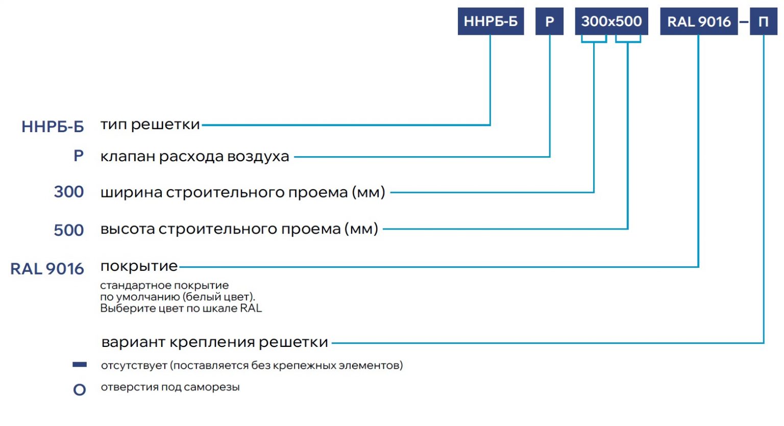 - По умолчанию решетки окрашены полиэфирной порошковой краской белого цвета RAL 9016. По запросу возможно покрытие в другие стандартные цвета по шкале RAL. БРВ поставляется без покрытия.