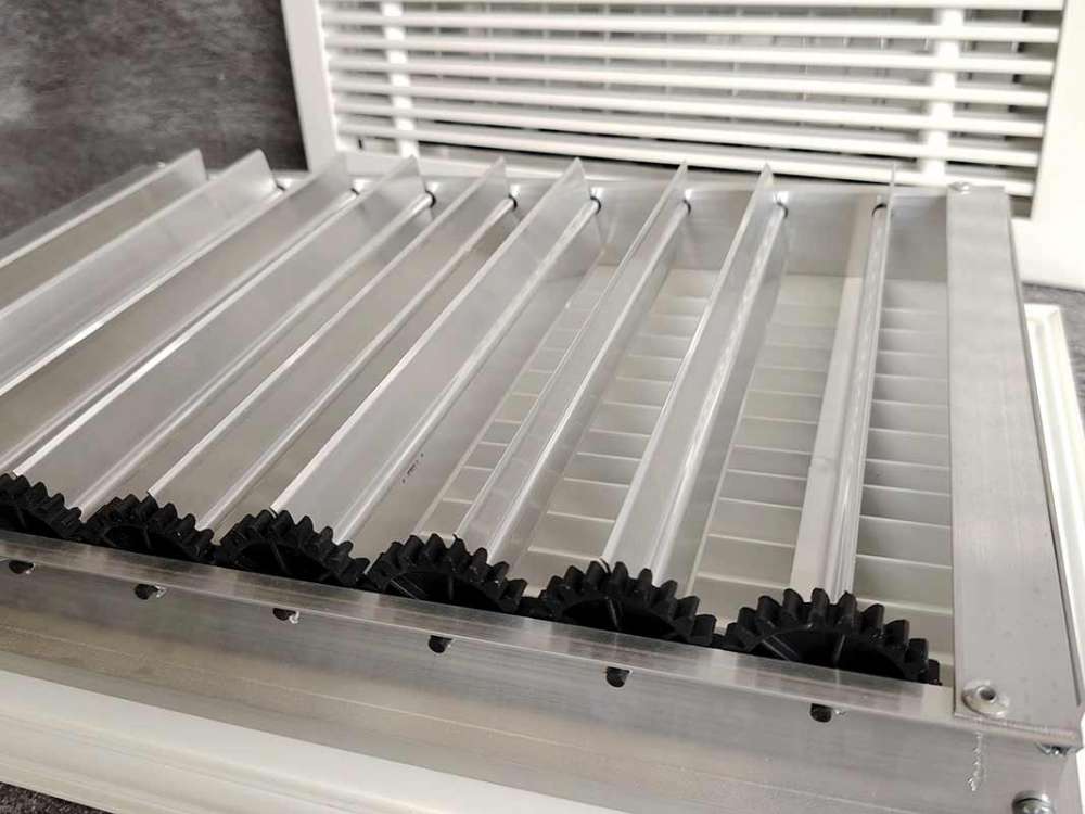 - При изготовлении решеток и БРВ используется запатентованный алюминиевый профиль АДЗ1 (ГОСТ 22233-2001). При производстве БРВ используется оцинкованная сталь для рамки, алюминиевый профиль для лопаток и пластиковые комплектующие (шестеренки и втулки).