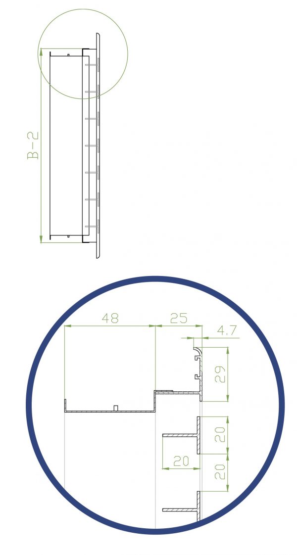 По дополнительному запросу решетки НЩТБ могут быть оснащены отверстиями, расположенными на лицевой стороне рамки для крепления с помощью винтового соединения. Предусмотрена возможность оснащения адаптером для присоединения к воздуховоду.