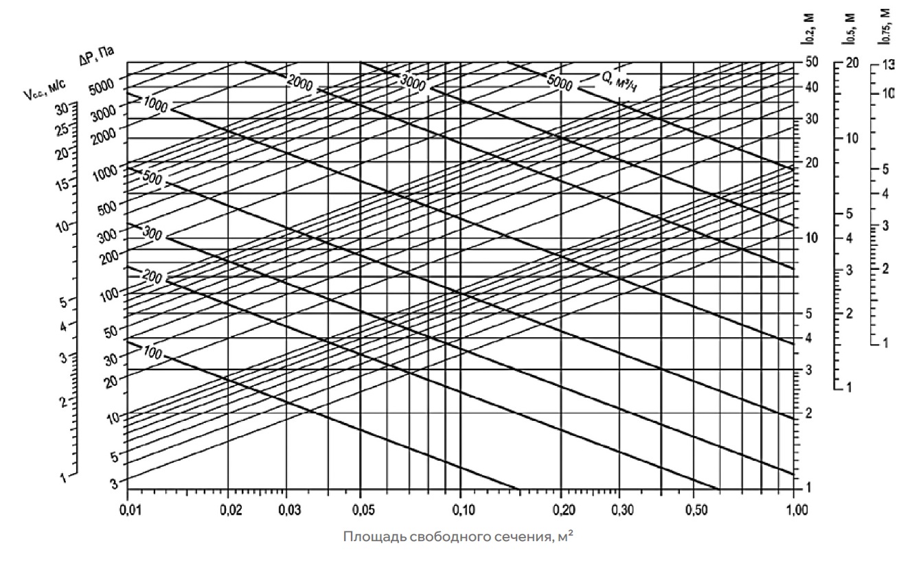 Диаграмма для подбора типоразмера и определения аэродинамических характеристик