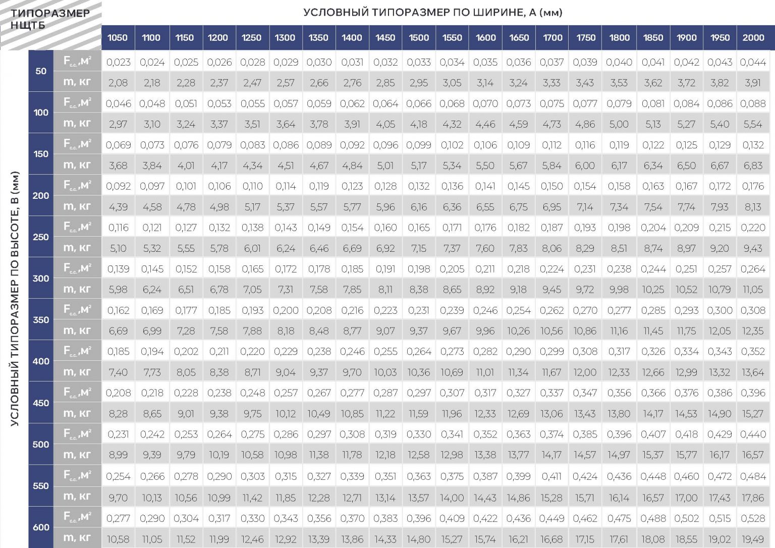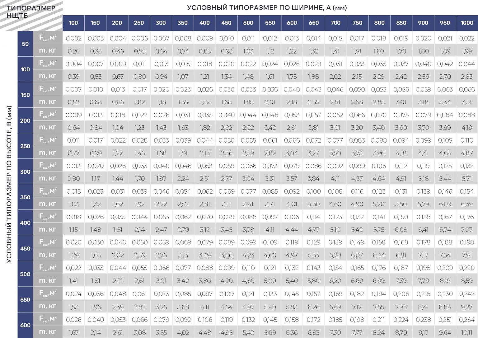 Габаритно-посадочные размеры нерегулируемой решетки НЩТБ