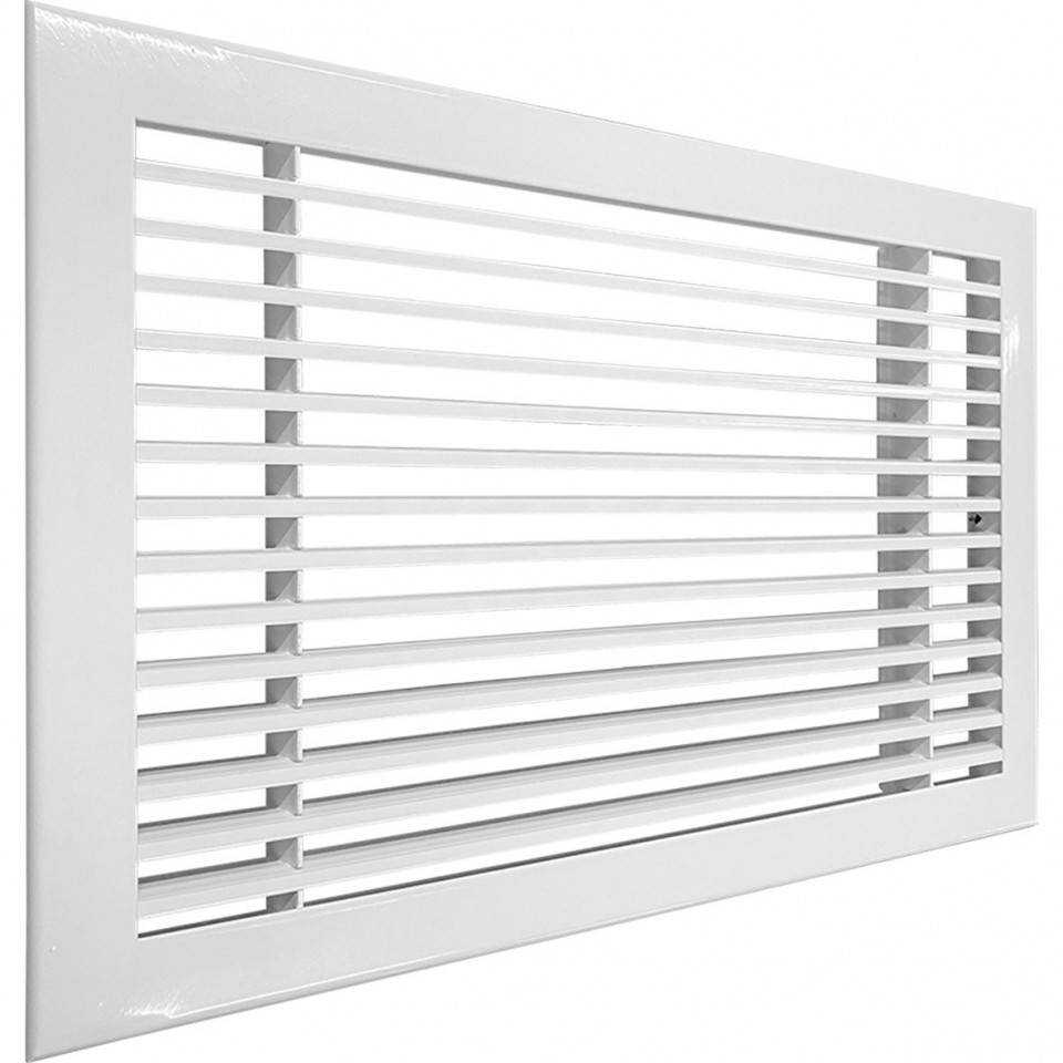 Решетка имеет рамку и горизонтально расположенные Y-образные жалюзи, угол которых зафиксирован под углом 0˚относительно плоскости. Раздача воздуха происходит с углом отклонения 15˚ от нормали в одну сторону.
