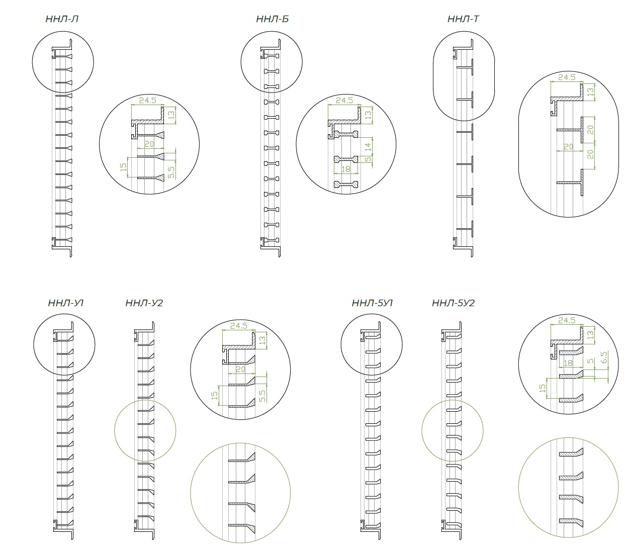 Решетки данного вида включают в себя изделия стандартных типоразмеров, а также возможно изготовление любых размеров с шагом 1 мм.