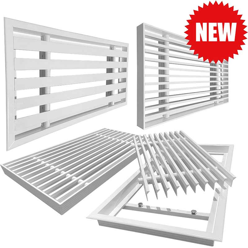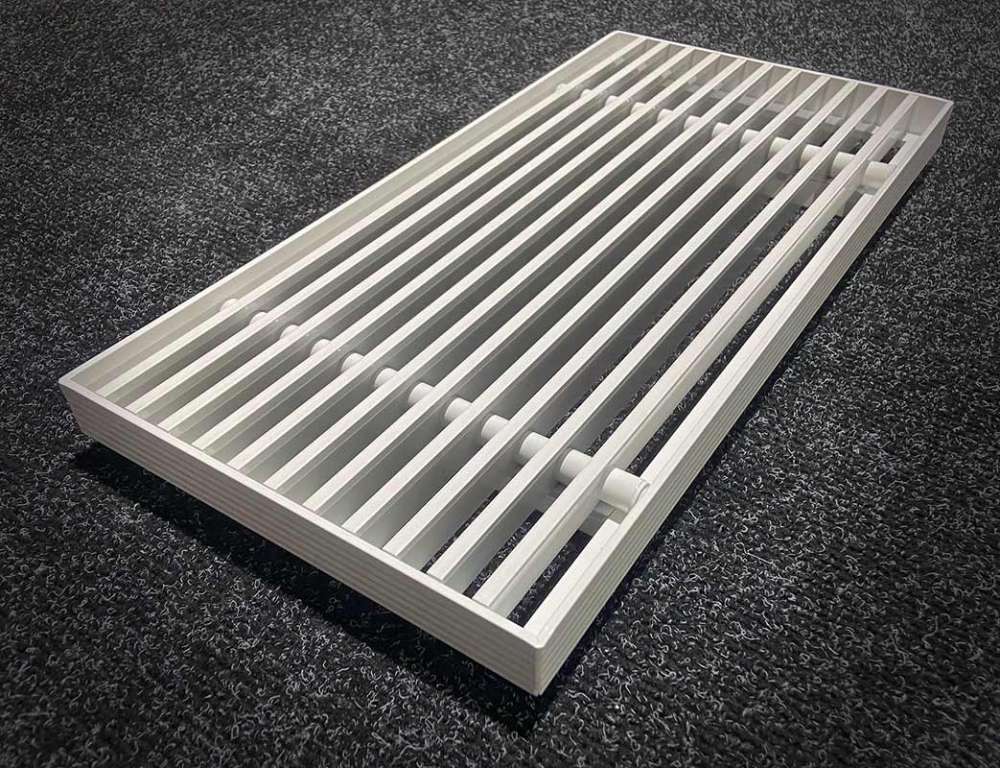 - По умолчанию решетки окрашены полиэфирной порошковой краской белого цвета RAL 9016. По запросу возможно покрытие в другие стандартные цвета по шкале RAL.