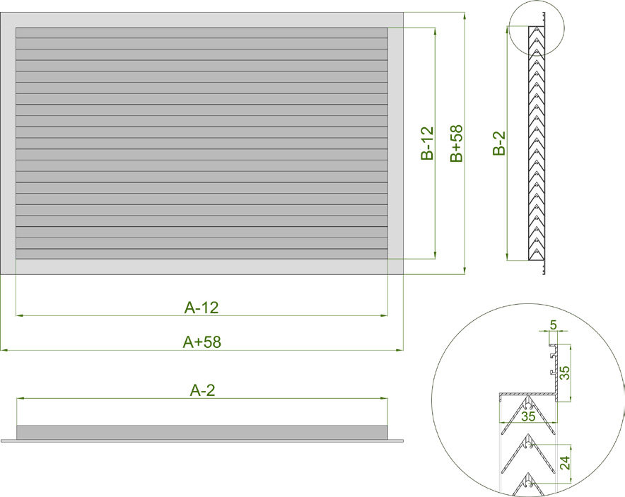 При изготовлении решеток используется запатентованный алюминиевый профиль АДЗ1 (ГОСТ 22233-2001). По умолчанию решетки окрашены полиэфирной порошковой краской белого цвета RAL 9016. По запросу возможно покрытие в другие стандартные цвета по шкале RAL.