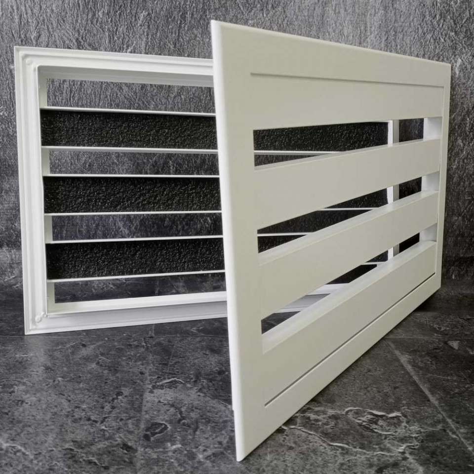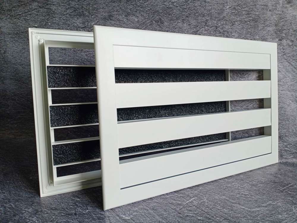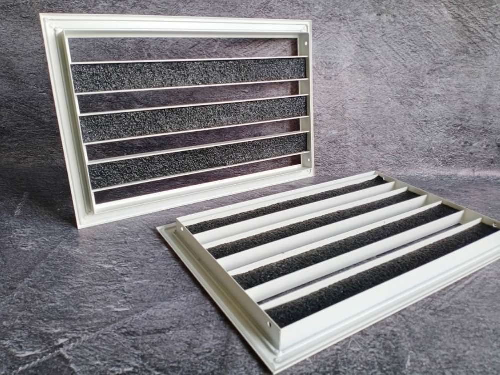 Переточные решетки звукопоглощающие РП-АКУСТИК применяются в системах вентиляции и кондиционирования и выполняют воздухораспределительную и шумопоглощающую функцию. Предназначены для монтажа в дверной или стенной проем, межкомнатные перегородки и прочие перекрытия для циркуляции воздуха между помещениями различных типов и назначения: административного, общественного и промышленного. Решетка РП-АКУСТИК состоит из двух решеток – наружной и ответной. В решетках неподвижно закреплены П-образные горизонтальные жалюзи обклеены шумопоглощающим материалом, препятствующие обзору и потоку звука сквозь решетку. Наружная и ответная решетка изготовлена из алюминиевого профиля в виде прямоугольной рамы. Наружная решетка устанавливается в дверной или стенной проем, а ответная решетка устанавливается с противоположенной стороны. Размеры решеток (глубина) позволяют устанавливать их на дверях или тонких перегородках толщиной от 40 до 60 мм. Решетки данного вида включают в себя изделия стандартных типоразмеров, а также возможно изготовление любых размеров с шагом 1 мм. Определяющим размером являются размеры строительного проема. Минимальные рекомендуемые размеры 100 мм, максимальные рекомендуемые размеры 1000 мм