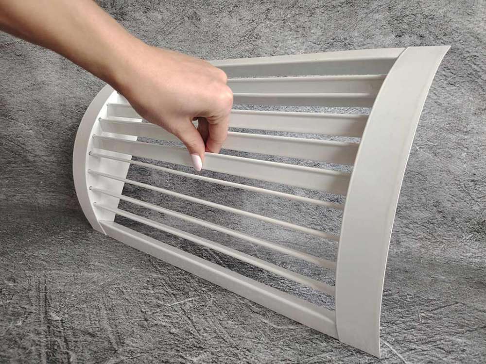 Крепление цилиндрической решетки осуществляется саморезами к воздуховоду.