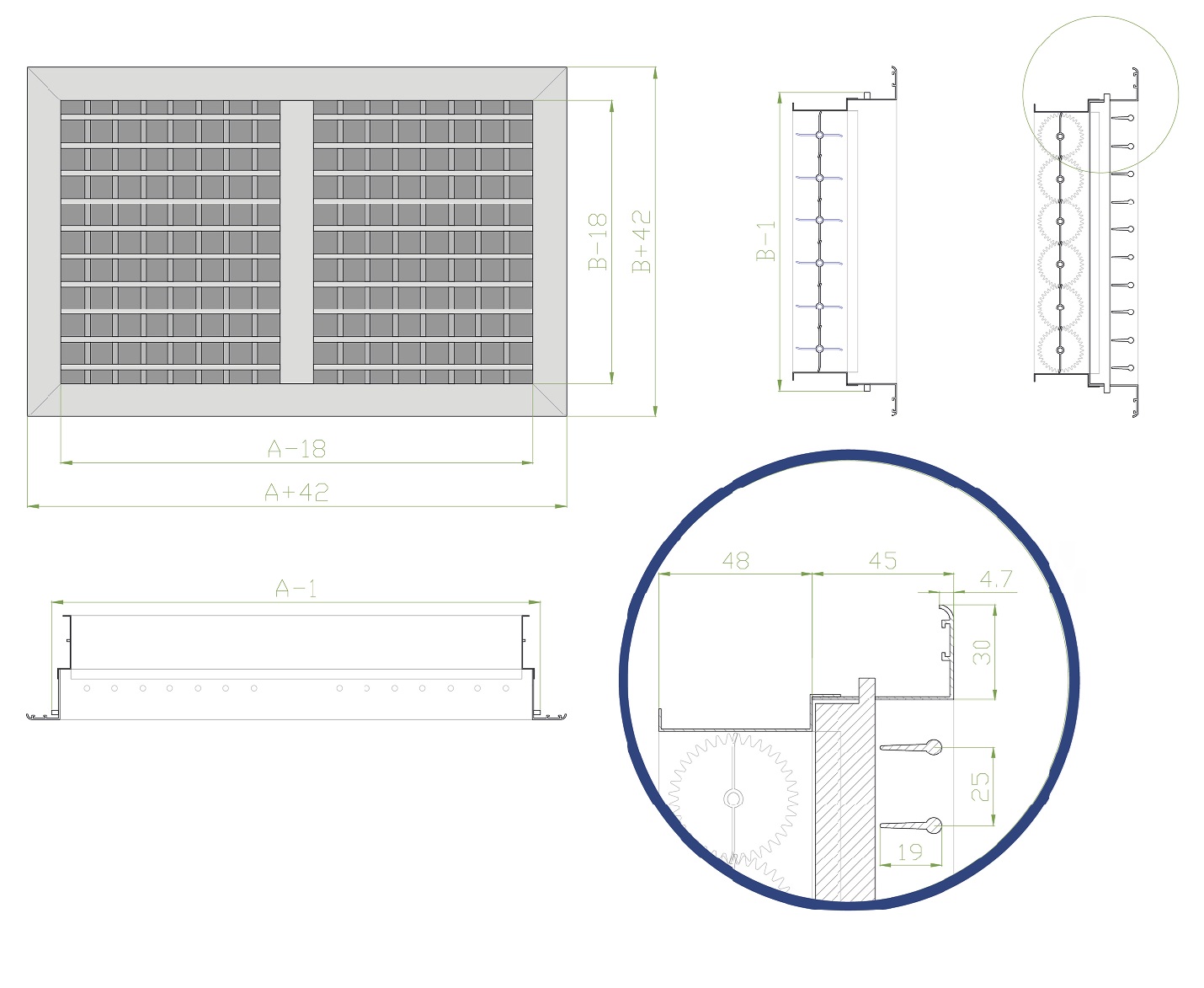 Габаритно-посадочные размеры регулируемой решетки ДВР-РП