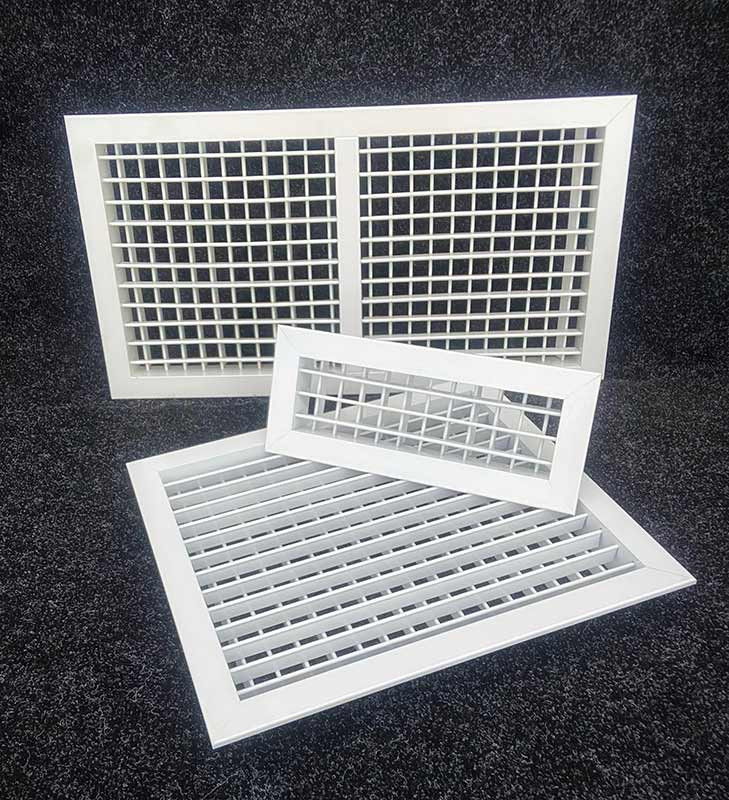 Двухрядная регулируемая решетка ДВР используется в приточно-вытяжной вентиляции и системах кондиционирования воздуха и предназначена для регулировки направления воздушного потока вверх/вниз и влево/вправо. При этом можно как расширять поток, так и сужать его и направлять в определенную сторону помещения. Решетки ДВР монтируются в вентиляционные каналы и строительные проемы различных типов.
