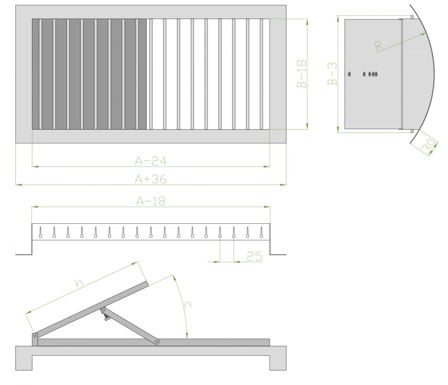 Габаритно-посадочные размеры регулируемой решетки ОГРЦ-В-РП. АхВ размеры строительного проема.