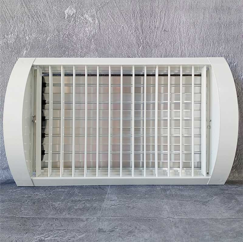 БРВ представляет собой рамку с установленными в неё лопатками. Положение лопаток регулируется при помощи ручки. Изменение положения лопаток позволяет изменять площадь свободного сечения решетки, тем самым регулируя объем подаваемого воздуха.