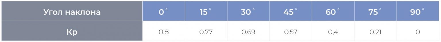 Значение коэффициента Кр при различных значениях угла β для клапана расхода воздуха