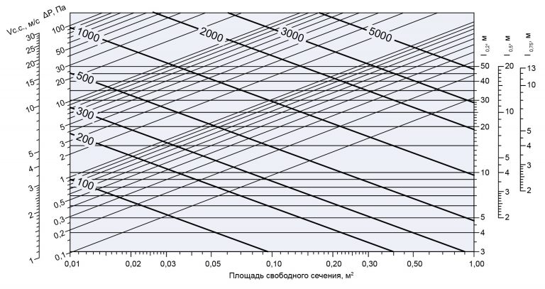 Диаграмма для подбора типоразмера и определения аэродинамических характеристик