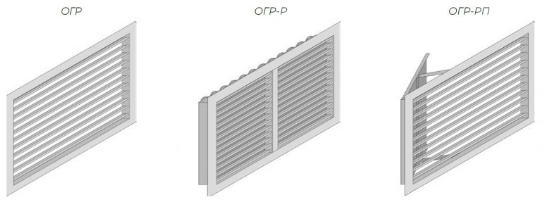 Габаритно-посадочные размеры регулируемой решетки ОГР с фильтром