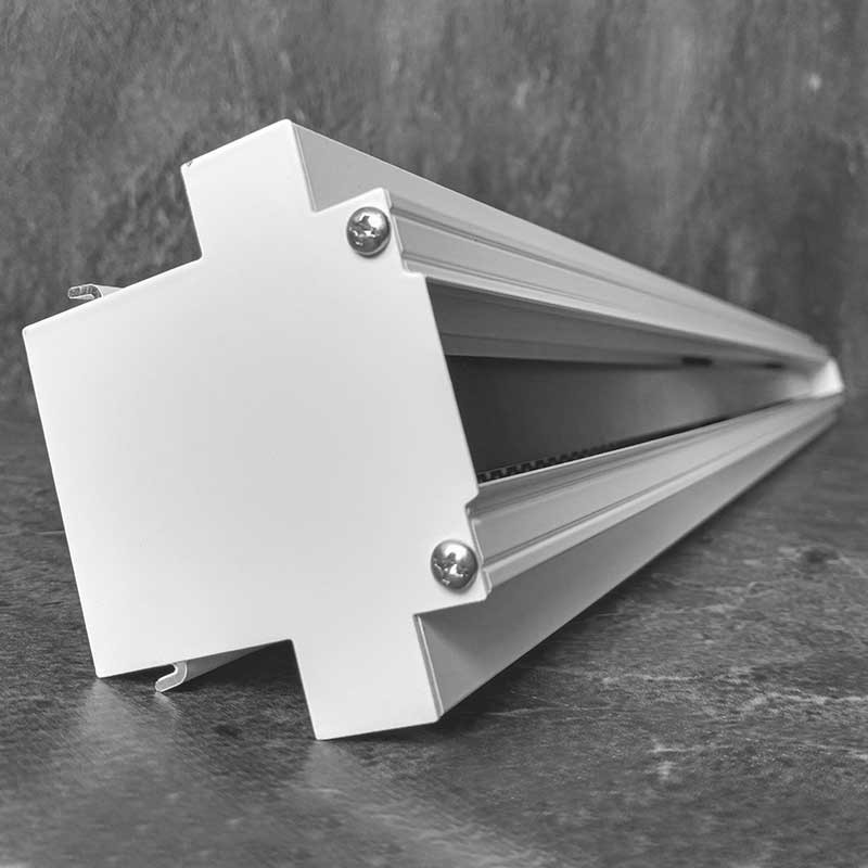 Как и все щелевые решетки, диффузор ПВ изготавливается в виде угловой секции для установки вентиляционной системы по всему периметру помещения.