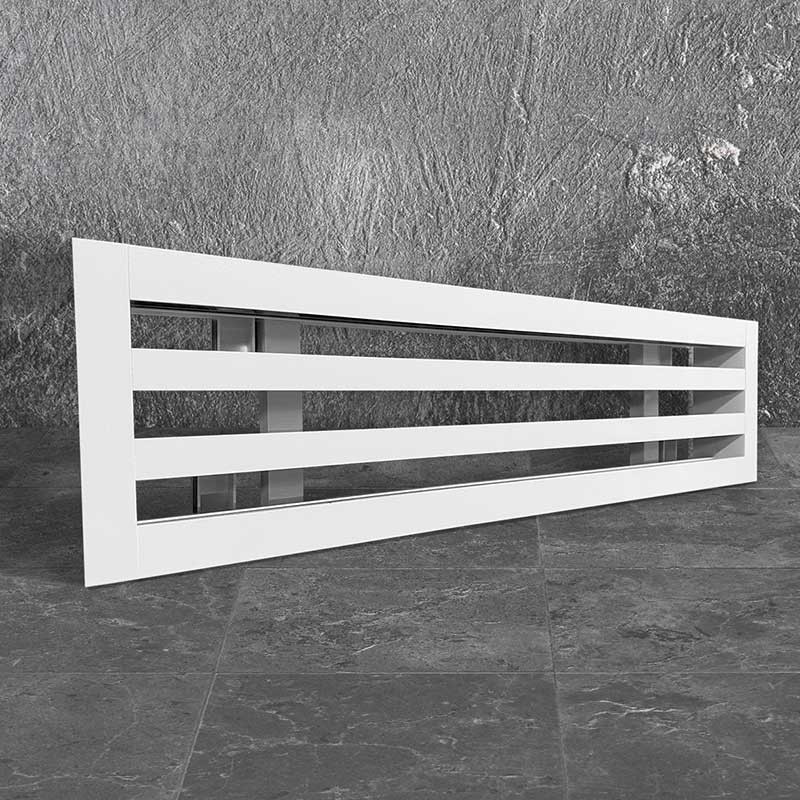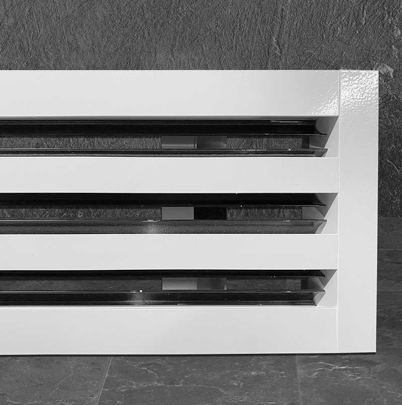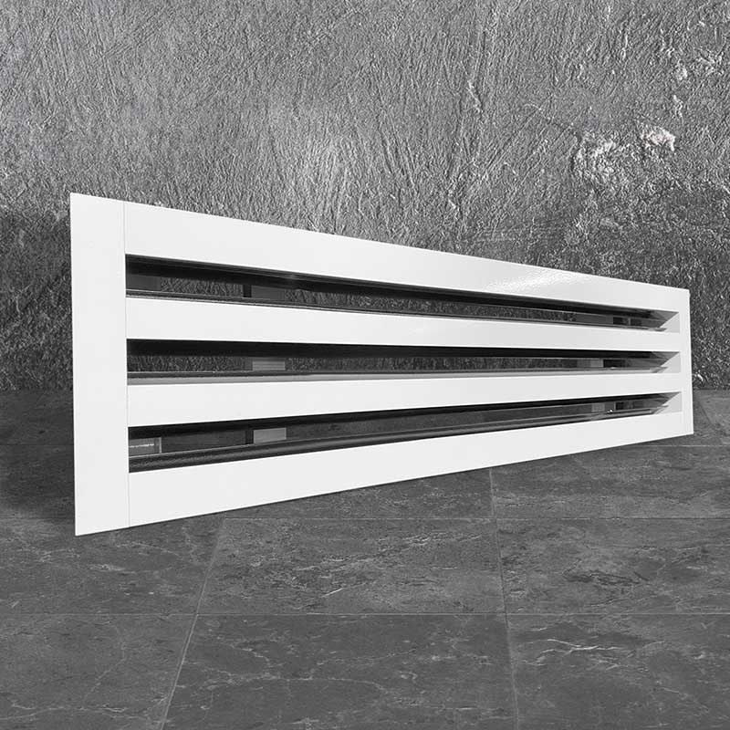 Щелевая вентиляционная решетка ЛЩР2 представляет собой раму, имеет несколько щелей (от 1 до 6), где жалюзи закреплены неподвижно к раме (основанию). Конструкция изготавливается из алюминиевого профиля АД31 (ГОСТ 22233-2001). Конструкция решетки предусматривает стандартное крепление с помощью винтового соединения. Возможно оснащение решетки адаптером, для присоединения к воздуховоду. Изделие покрывается порошковой полиэфирной краской в базовый белый цвет (RAL 9016),под заказ – в любой оттенок (по международному каталогу RAL). Размерный ряд изделий включает в себя стандартные типоразмеры, а также индивидуальные – по размерам заказчика. Используется в системах кондиционирования, вентиляции и воздушного отопления.