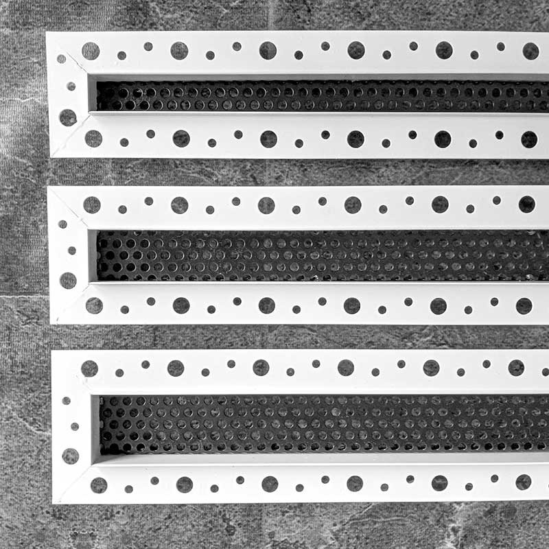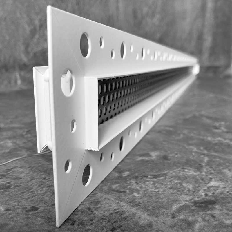Щелевая скрытая решетка AR-Line-1 представляет собой декоративную рамку с перфорированной стальной кассетой внутри. После монтажа решетки, видимой частью в помещении остаётся только щелевой слот чёрного цвета. Для удобства монтажа рамка оснащена «полкой» 6 мм под соответствующую толщину гипсокартона или комбинации листов разной толщины. Отверстия в рамке улучшают адгезию финишного материала.