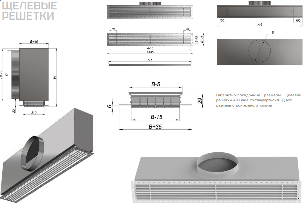 Щелевые решетки скрытого монтажа AR-Line-L предназначены для подачи и удаления воздуха системами вентиляции, кондиционирования и воздушного отопления. Линейные диффузоры вентиляционные AR-Line-L используются в качестве конечного декоративного элемента инженерной системы. Он обеспечивает подачу свежего или удаление загрязненного воздуха из помещений. Отличительной особенностью модели AR-Line-L является её дизайн, особая форма профиля образует длинную непрерывную воздушную линию в помещении, что отвечает требованиям самых современных дизайнерских идей.
